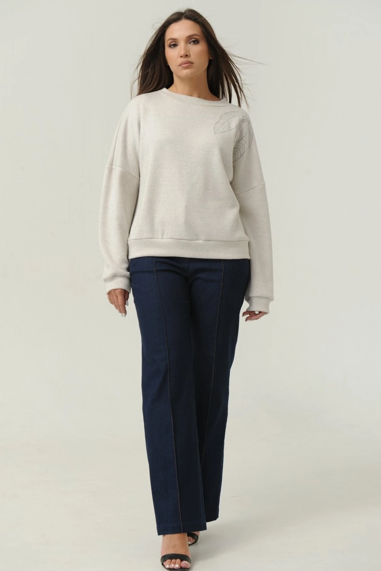 Женские брюки Ma Сhérie из джинсовой ткани. На передней половинке функциональные карманы с диагональным входом. Набрюках заутюжены стрелки, по колорым проходит декоративная отделочная строчка. Застежка спереди на молнию с гульфиком и петлю-пуговицу. На задних половинках накладные карманы. Брюки декорированы отделочной строчкой контрастного цвета. Можно приобрести в комплекте с жакетом - модель 3016.