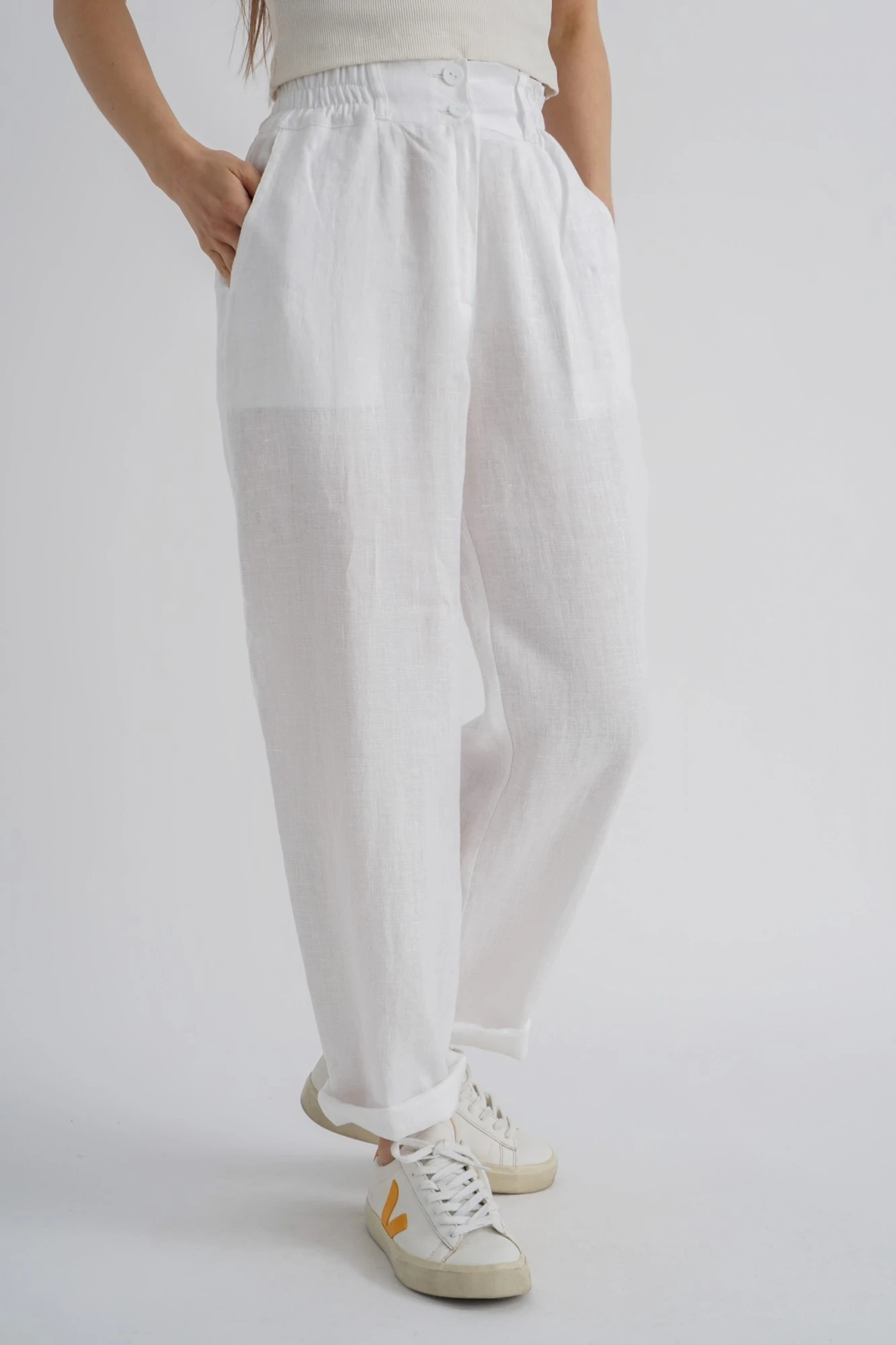 Стильные Брюки -Бананы изготовлены из качественного льна с эффектом мятости. Брюки летнего ассортимента, свободные ,застёгиваются на молнию. По переду внутренние карманы. Сзади накладные карманы. Очень удобные. Отворот не закреплён. Подходят как на рост 164, так и на рост 170. Застёгиваются на молнию и 2 пуговицы. В задней части пояса и частично по переду вставлена резинка. Таблицу измерения изделия смотрите на фото 5. Посадка: средняя