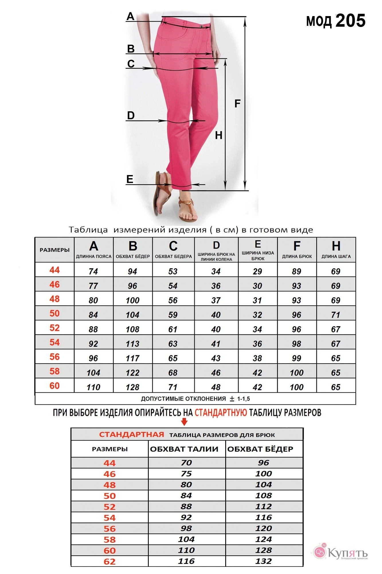 Таблица размеров