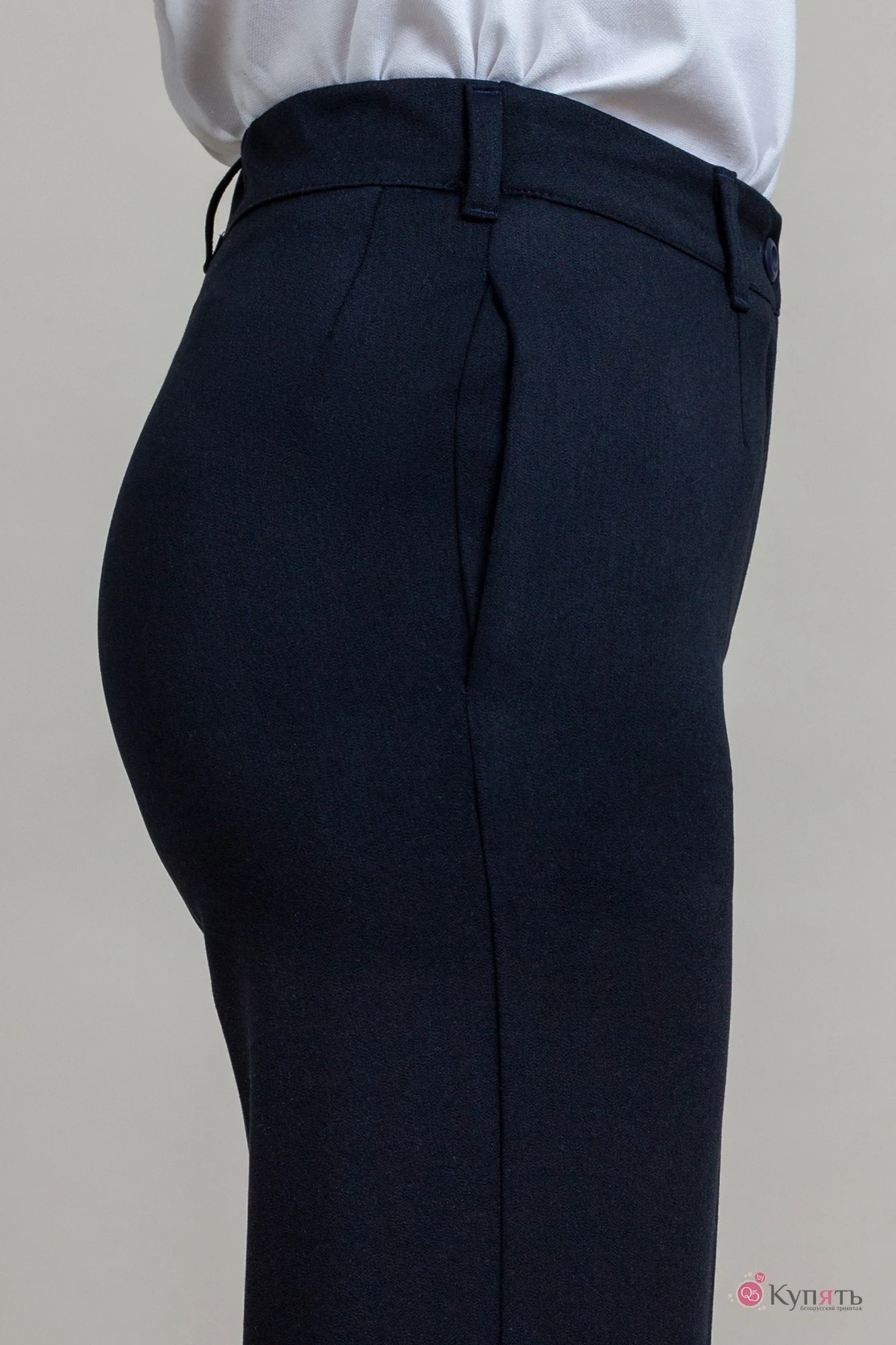 Стильные классические Брюки со стрелками осенне-зимнего ассортимента, свободные от бедра. В боковых швах карманы. Застёгиваются на молнию и пуговицу. В задней части пояса вставлена резинка.