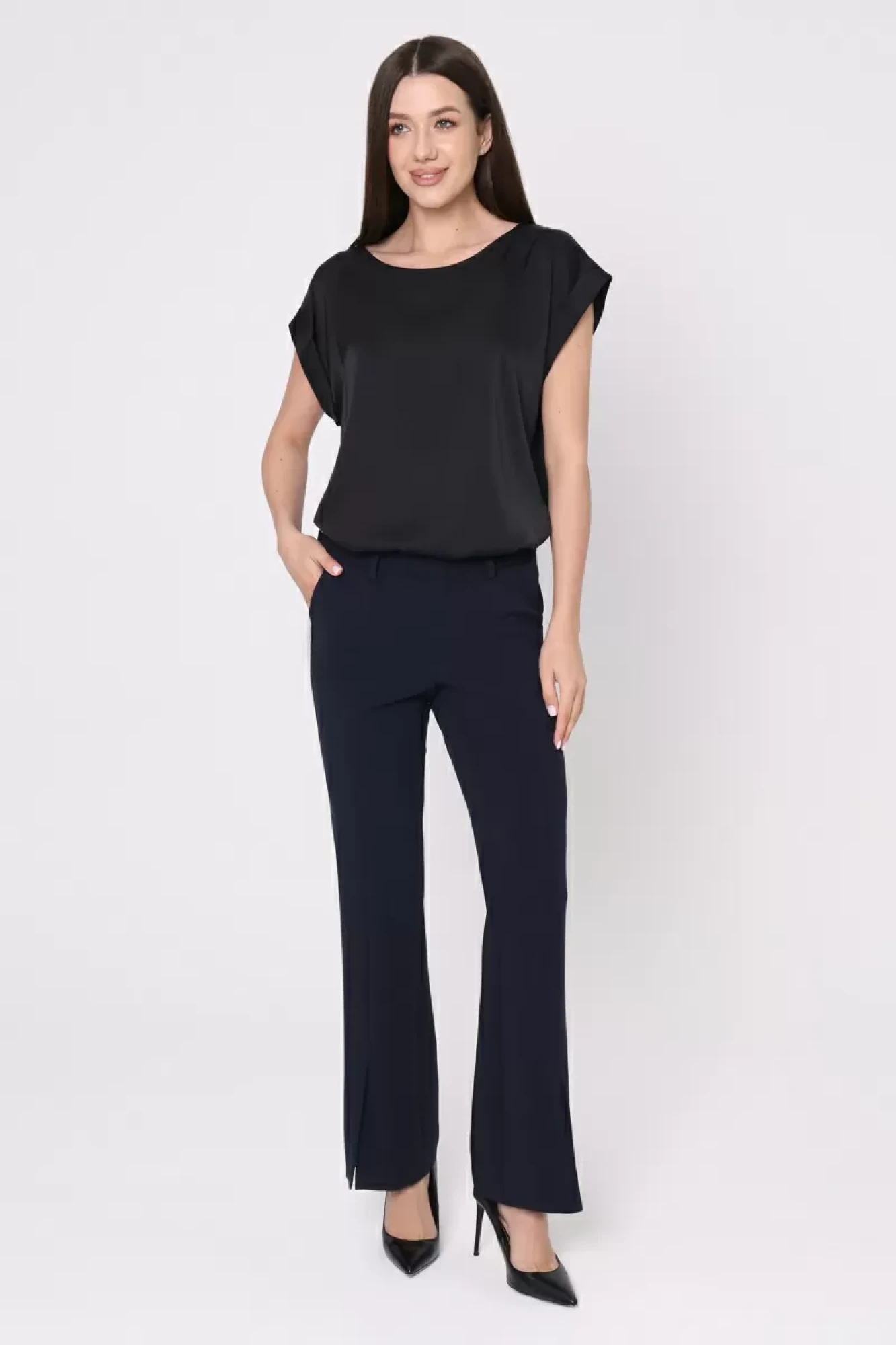 44 Брюки: Высота посадки - 21см, Длина брюк без пояса - 99см, Длина по внутреннему шву - 79см, Ширина брючин сверху - 56см, Обхват брюк по низу - 48см, Ширина по бедрам - 49см, Ширина по талии - 35см;