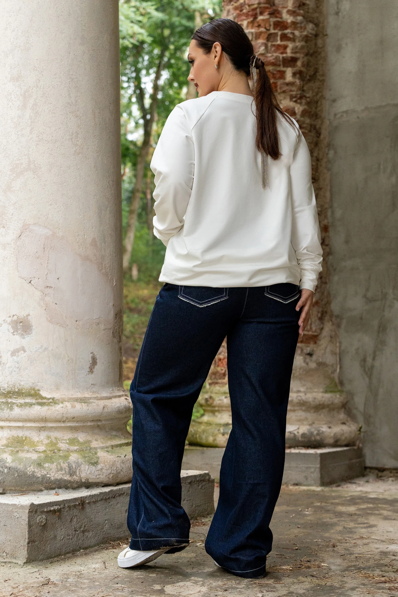 Джемпер прямого кроя с дизайнерской печатью"булавки", полочка с накладным карманом.Джемпер с притачными рукавами и манжетами.