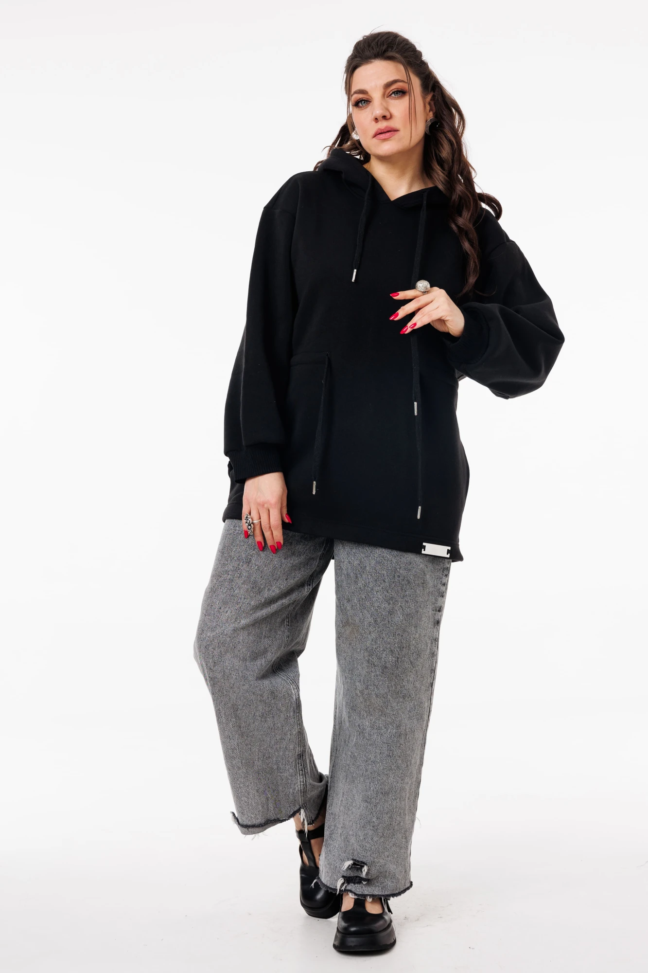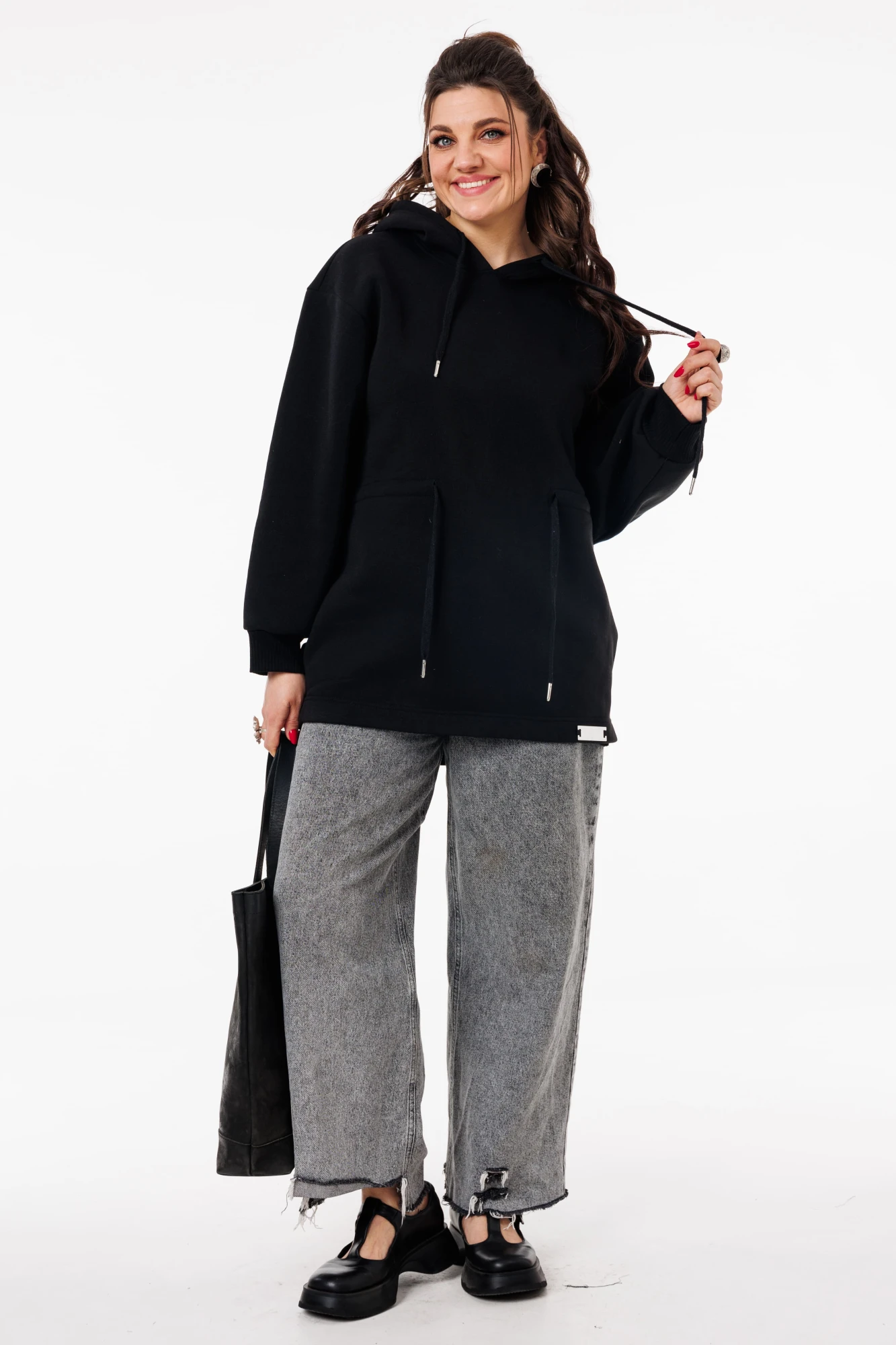 Мякгость и уют футера, свободный крой, наличие капюшона, длинные рукава на манжете, функциональные карманы в боковых швах и регулируемая кулиска со шнурком в области тали - это все то, что необходимо прохладными осенними вечерами и не только.