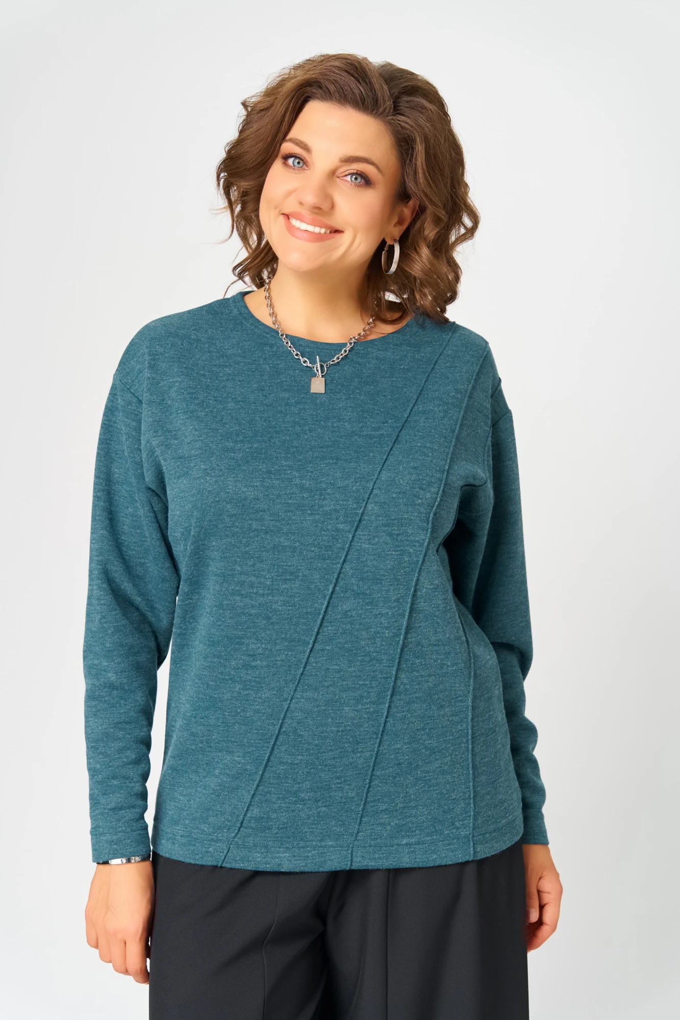 Джемпер женский из приятного к телу трикотажа, свободного кроя, по полочке имеются декоративные строчки. Джемпер имеет округлую горловину, которая создает стильный элегантный образ. Добавьте аксессуары и шикарный лук на каждый день уже создан! Этот свитер станет самым любимым в Вашем гардеробе. В таком женском джемпере вы будете чувствовать себя комфортно везде. Укутавшись в наш мягкий джемпер Вам будет уютно и тепло.