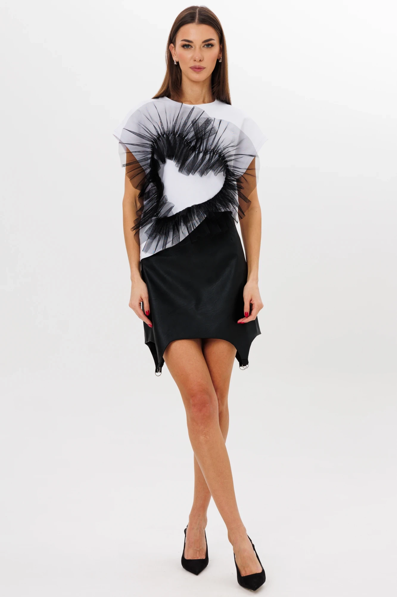 Крой: Летучая мышь — свободный, с расклешёнными рукавами, создающими уникальный силуэт.