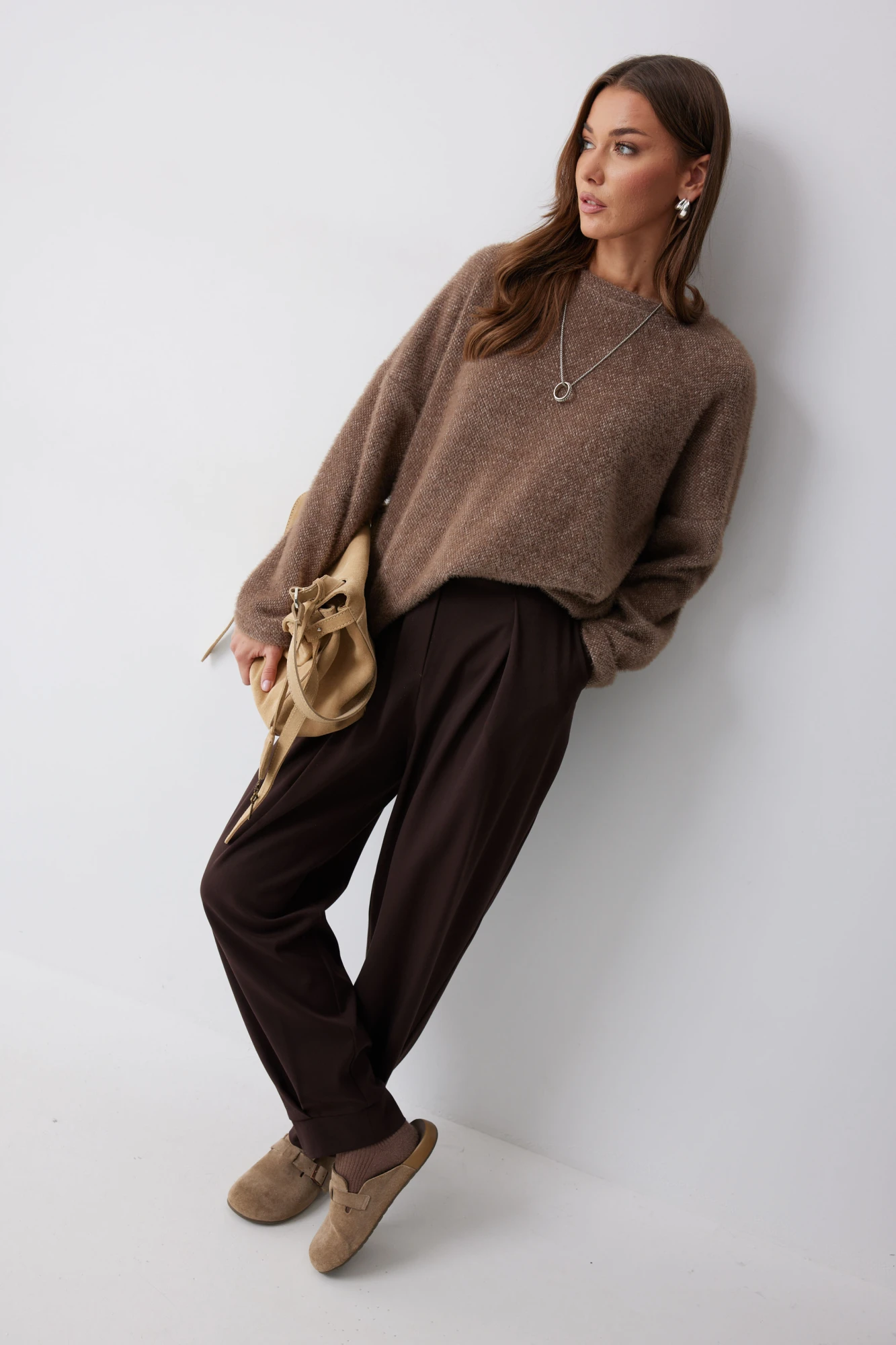 Джемпер прямого силуэта из трикотажного полотна. Горловина округлая. Рукав со спущенной линией плеча.