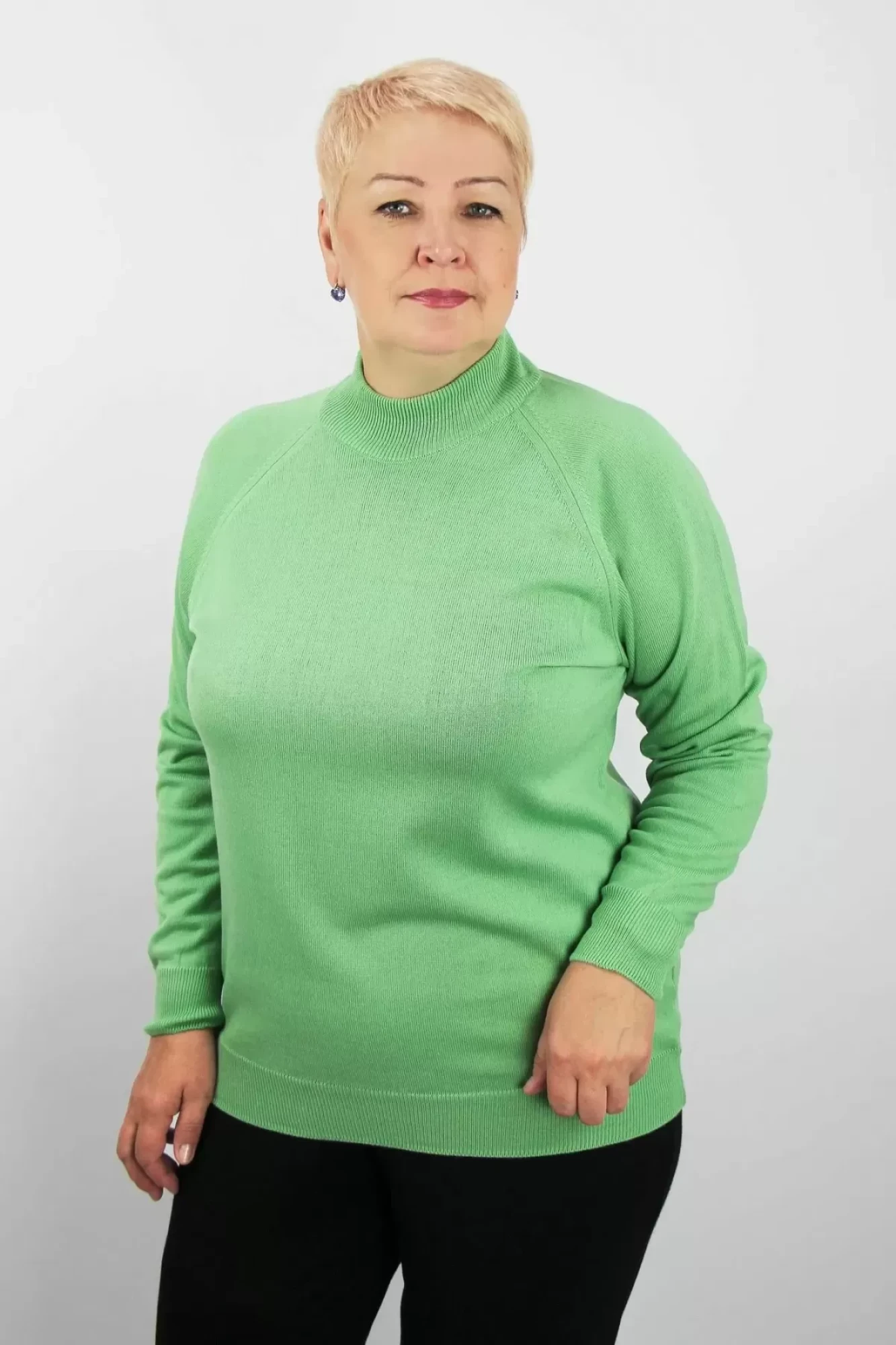 Свитер прямого силуэта с длинным рукаом "реглан". Воротник - двойная ластичная стойка 5,5см+-0,5см в готовом виде.