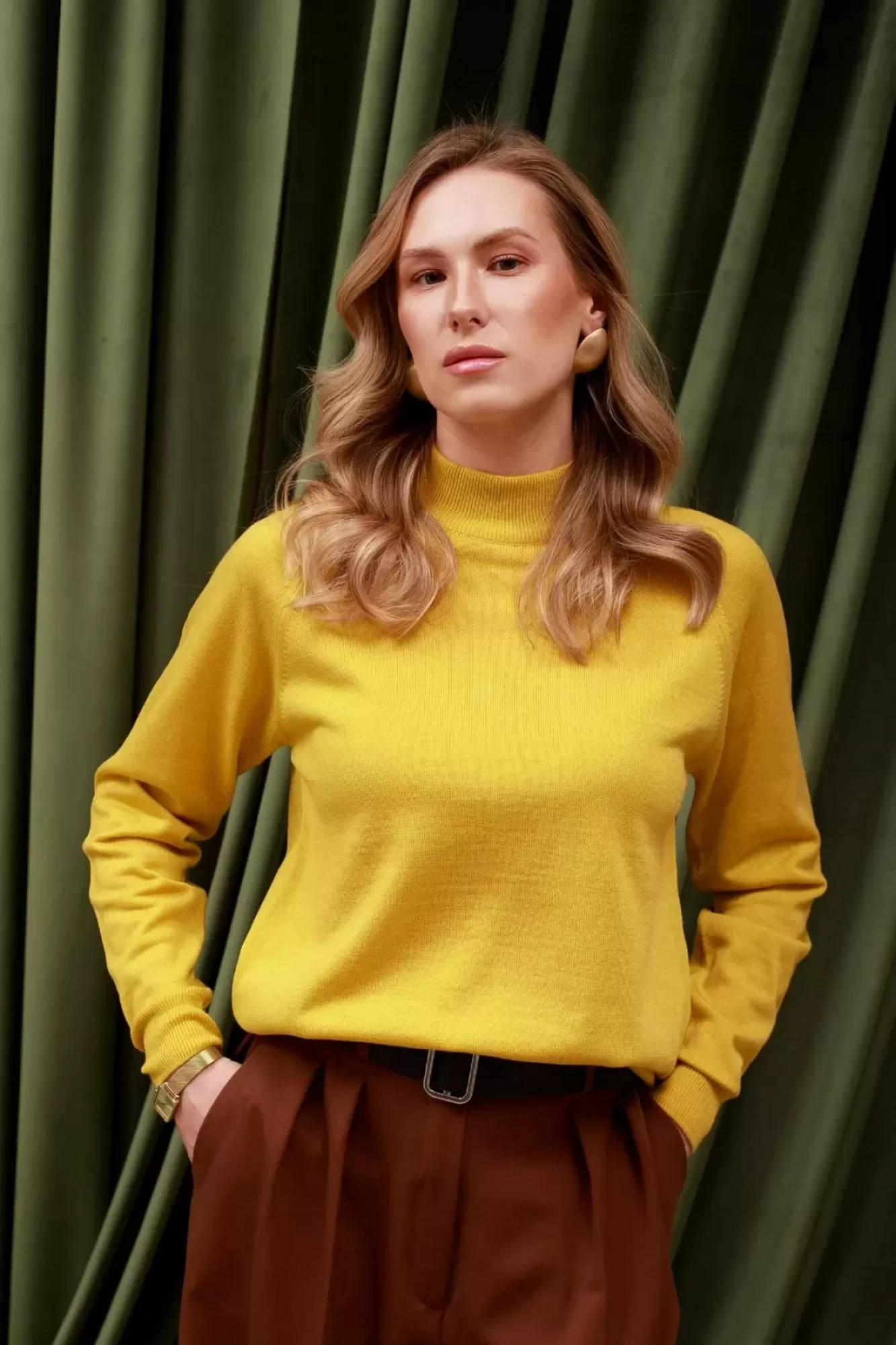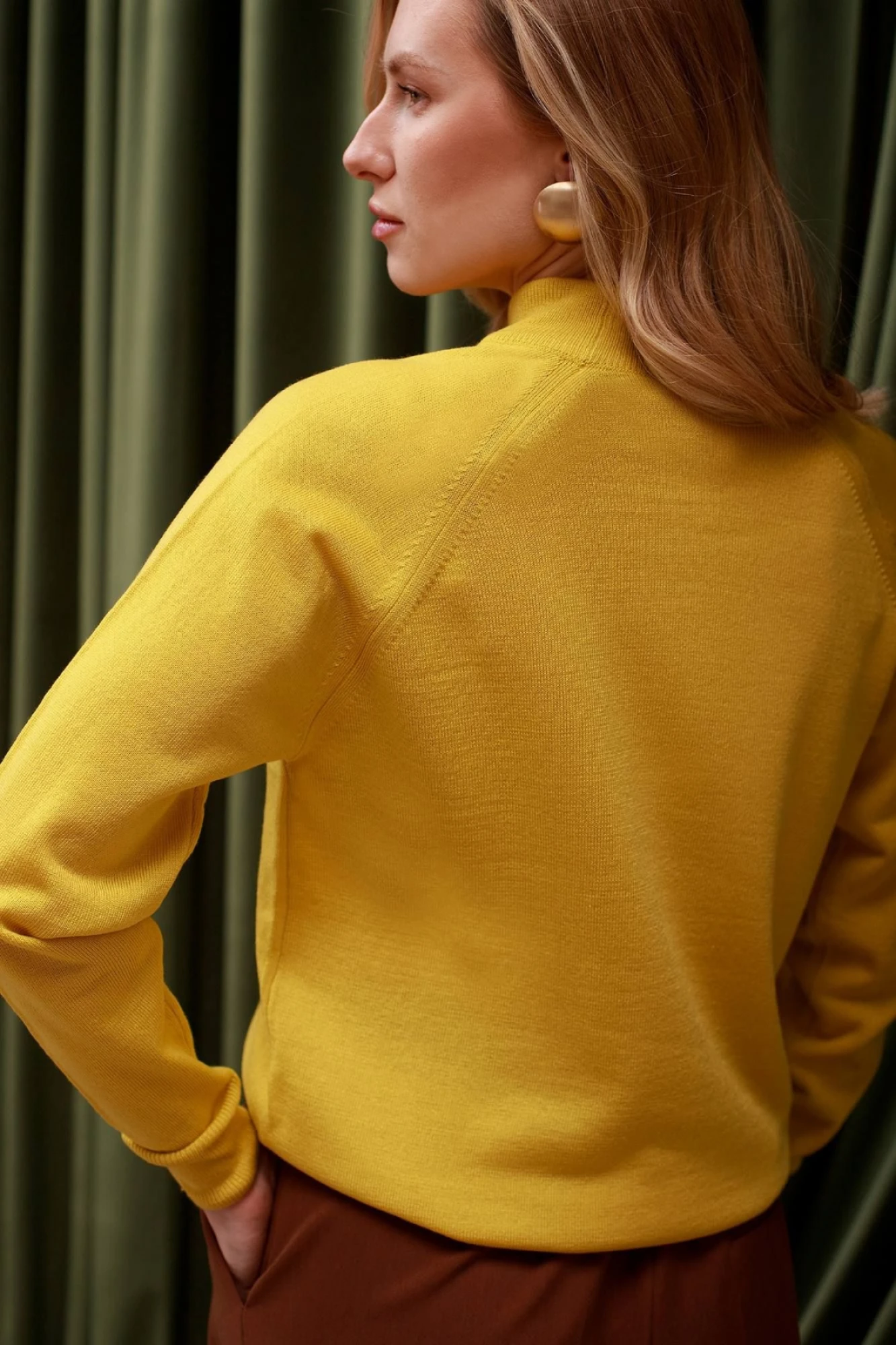 Свитерок лёгкий, больше напоминает водолазку. Но это не в упрёк. Весьма удобная вещь под пиджак. У меня только одно замечание - для 64 размера слегка тесный ворот, душит шею. Надеюсь разносится.
