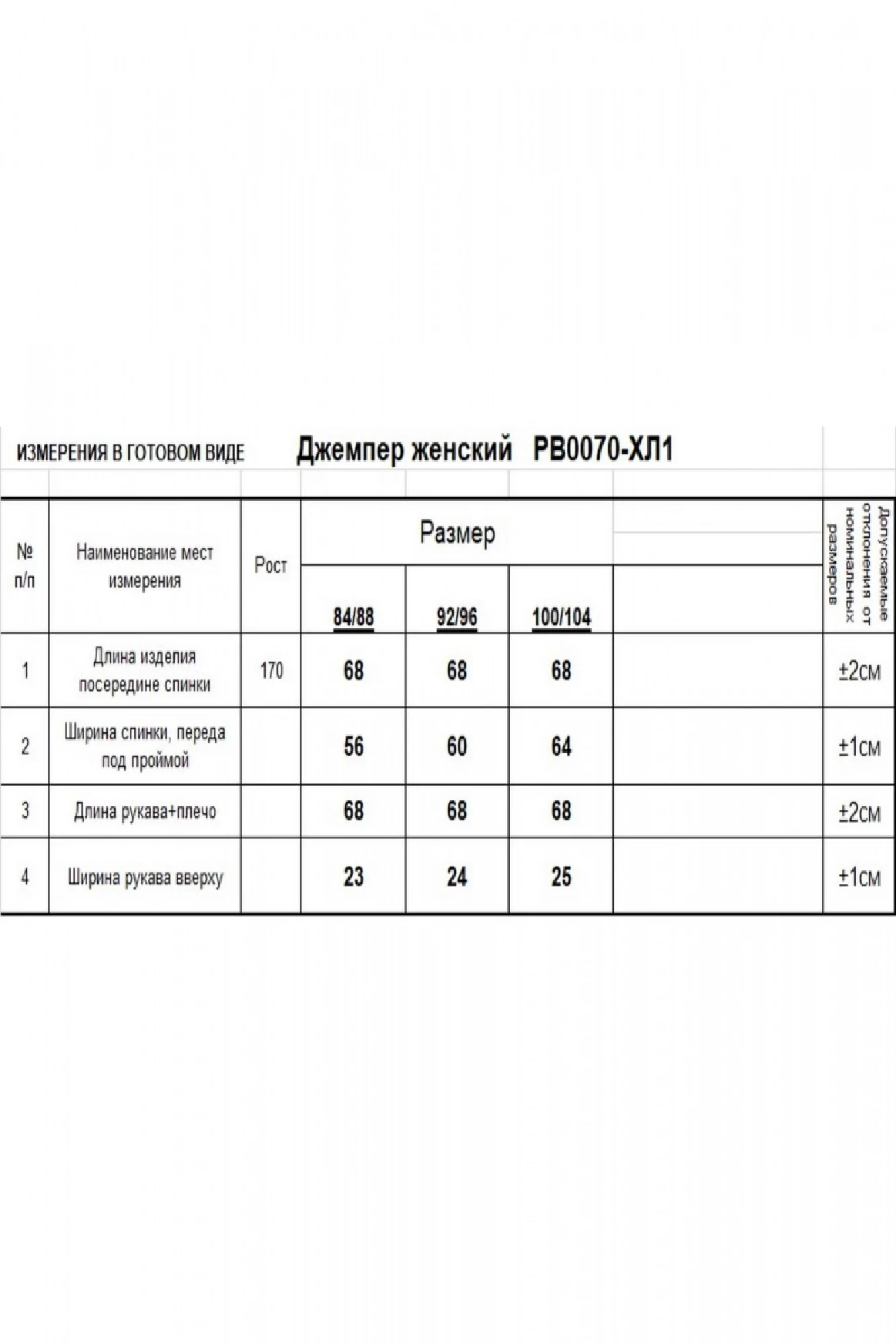 Таблица размеров
