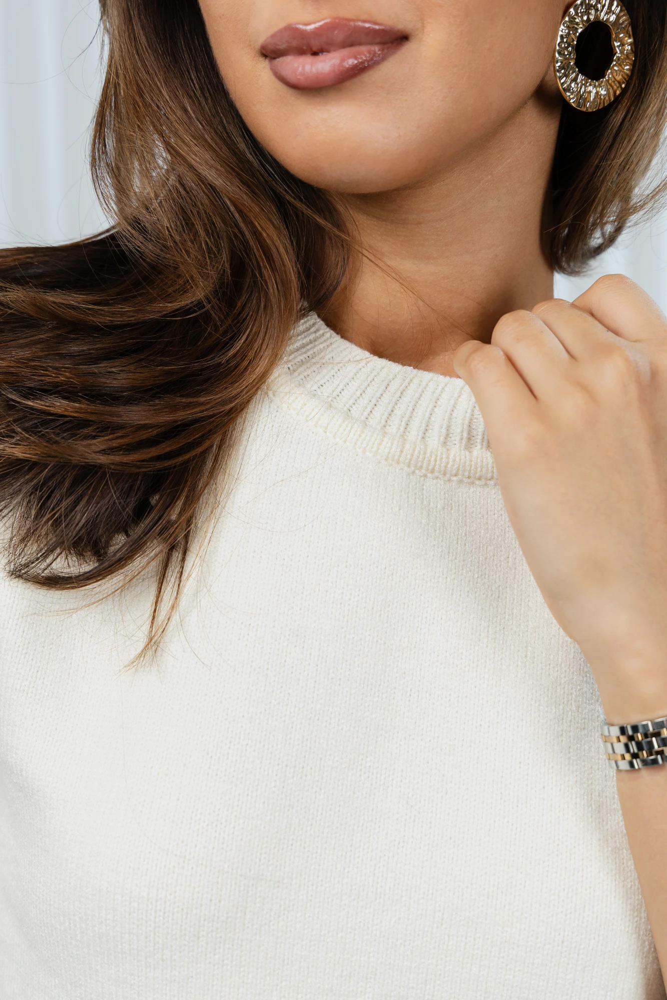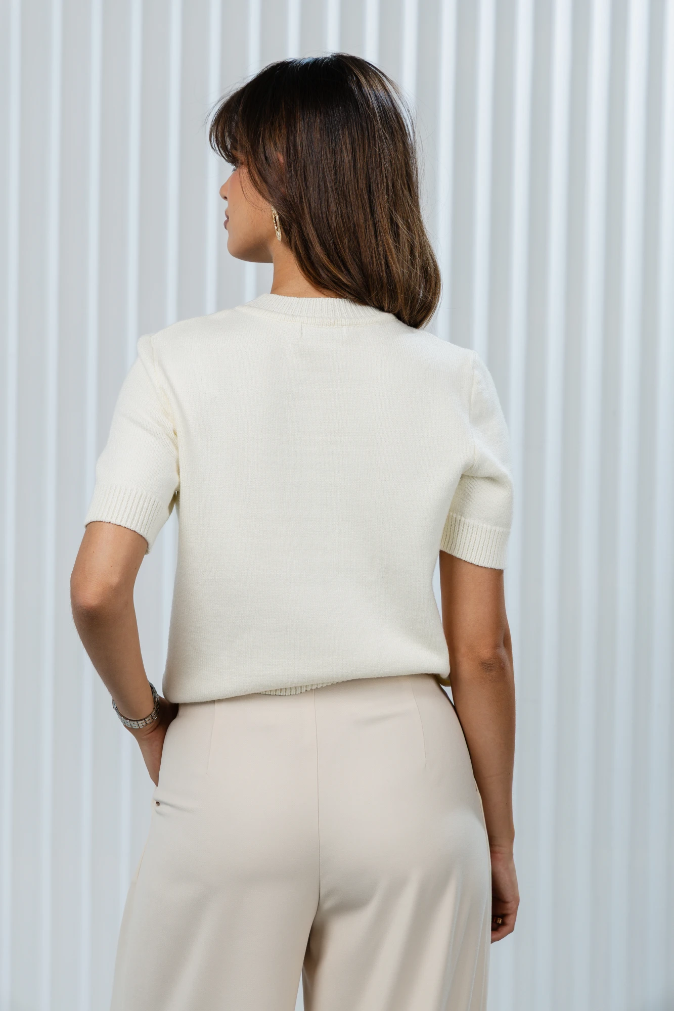 Дизайн: джемпер с короткими рукавами и округлым вырезом горловины. Лаконичный крой и мягкая текстура придают изделию женственность и универсальность;
