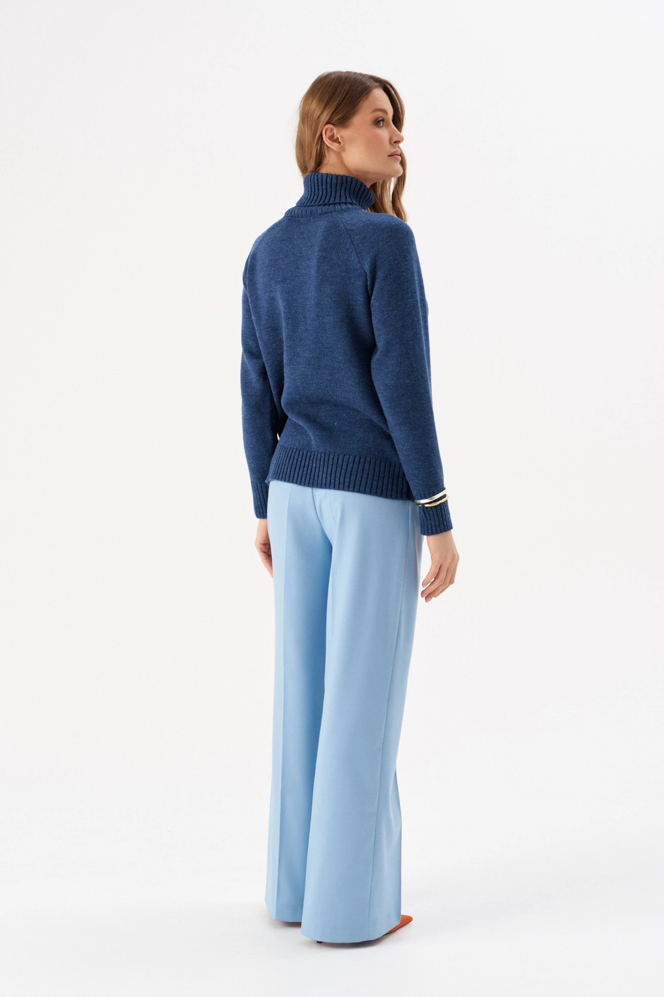 Стильный дизайн: Высокий воротник и простой крой делают этот свитер универсальным и подходящим для любого случая.
