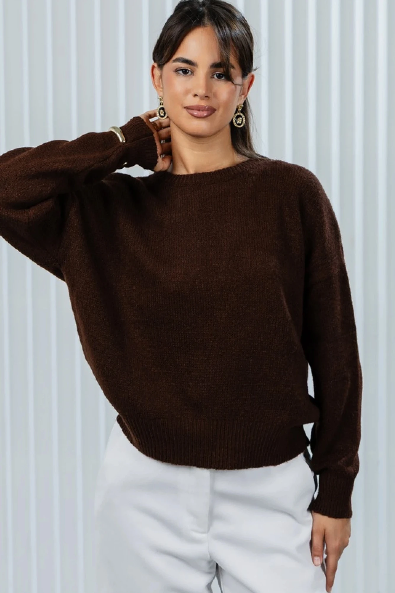 Стильный и удобный джемпер из мягкой пряжи станет идеальным дополнением вашего гардероба в прохладные дни. Базовые оттенки (молочный, светло-серый, шоколадный, черный) делают его универсальным — он легко сочетается с любыми цветами и стилями одежды.