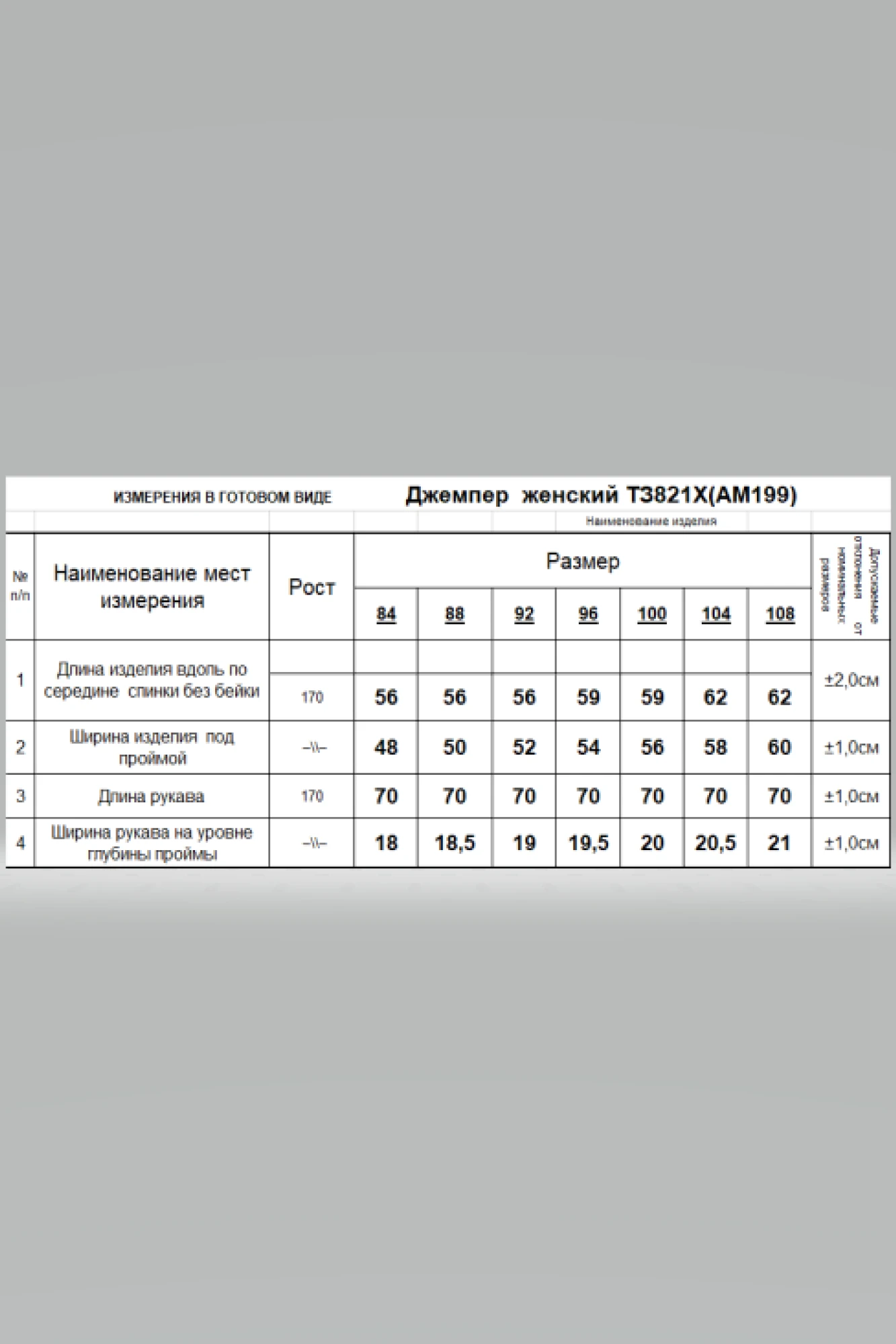 Таблица размеров