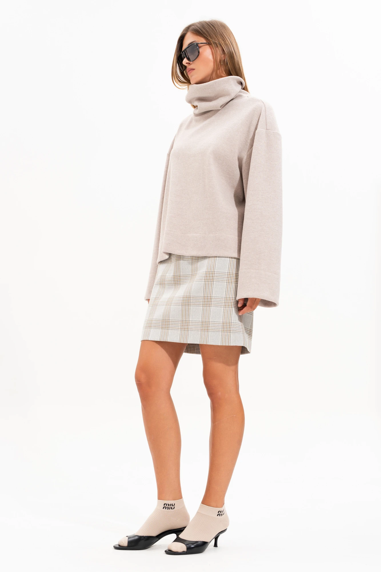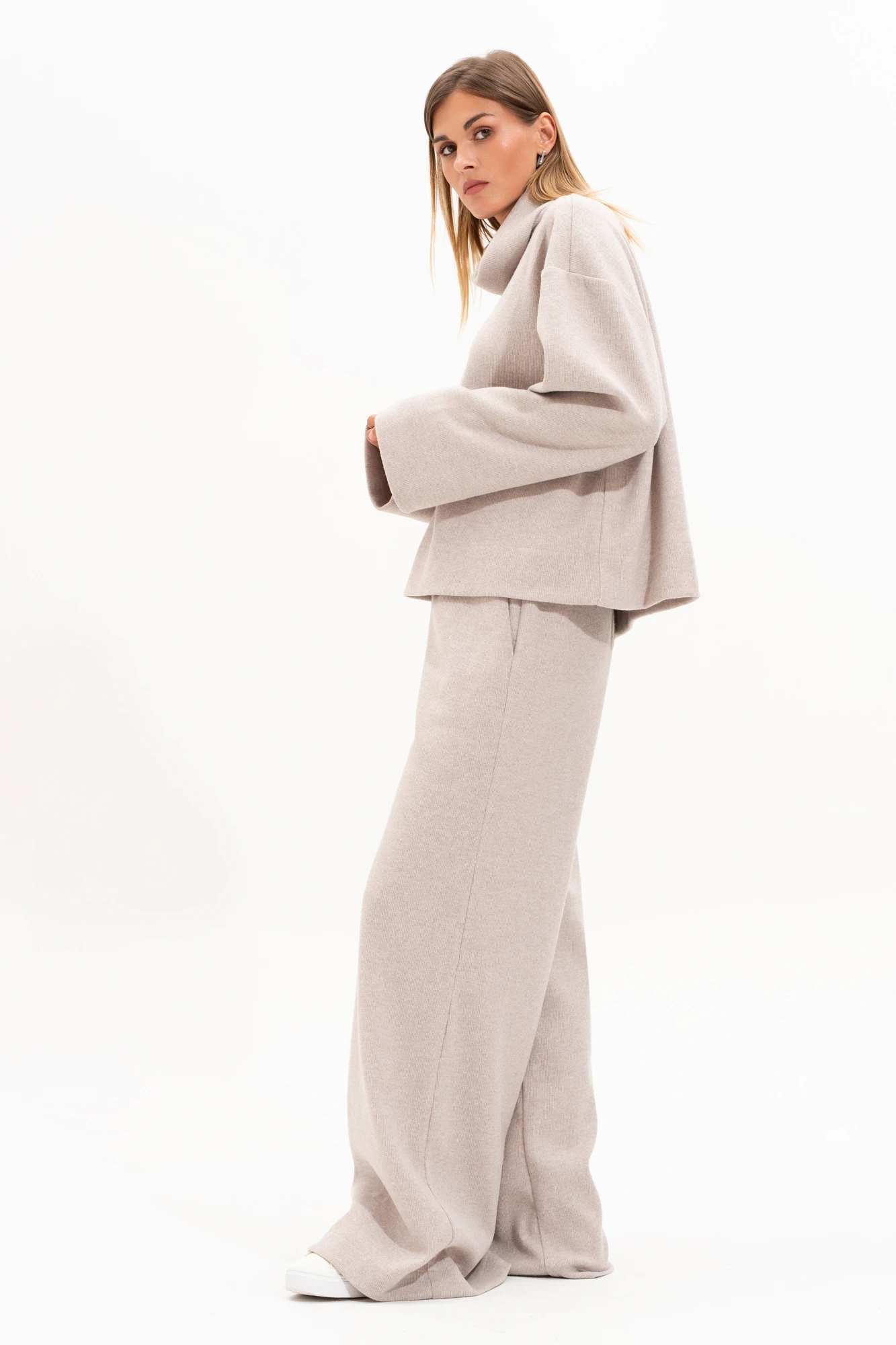 Джемпер оверсайз с длинным рукавом на спущенной пройме. Горловина округлой формы с объемным воротником стойкой. Изделие выполнено из мягкого трикотажного полотна, которое сочетает в себе благородный внешний вид и приятную текстуру.