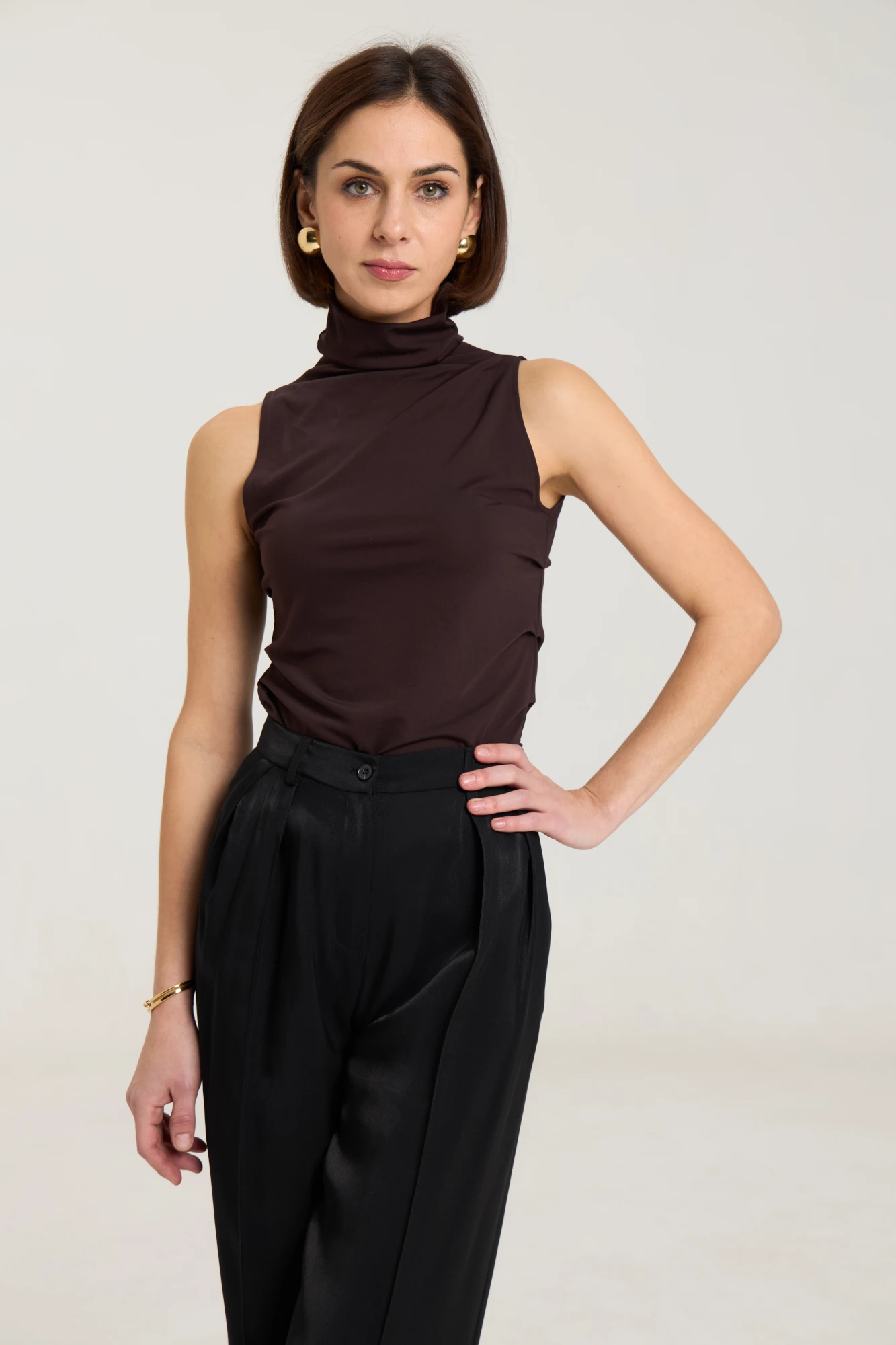 Джемпер выполнен из трикотажной ткани премиального класса, ткань плотная, мягкая, не просвечивает. Горло цельнокроеное высокое, за счет этого можно его драпировать либо носить с подворотом, по бокам защипы, что придает фигуре стройности, за счет красивых линий складок.,длина по спинке 59 см.