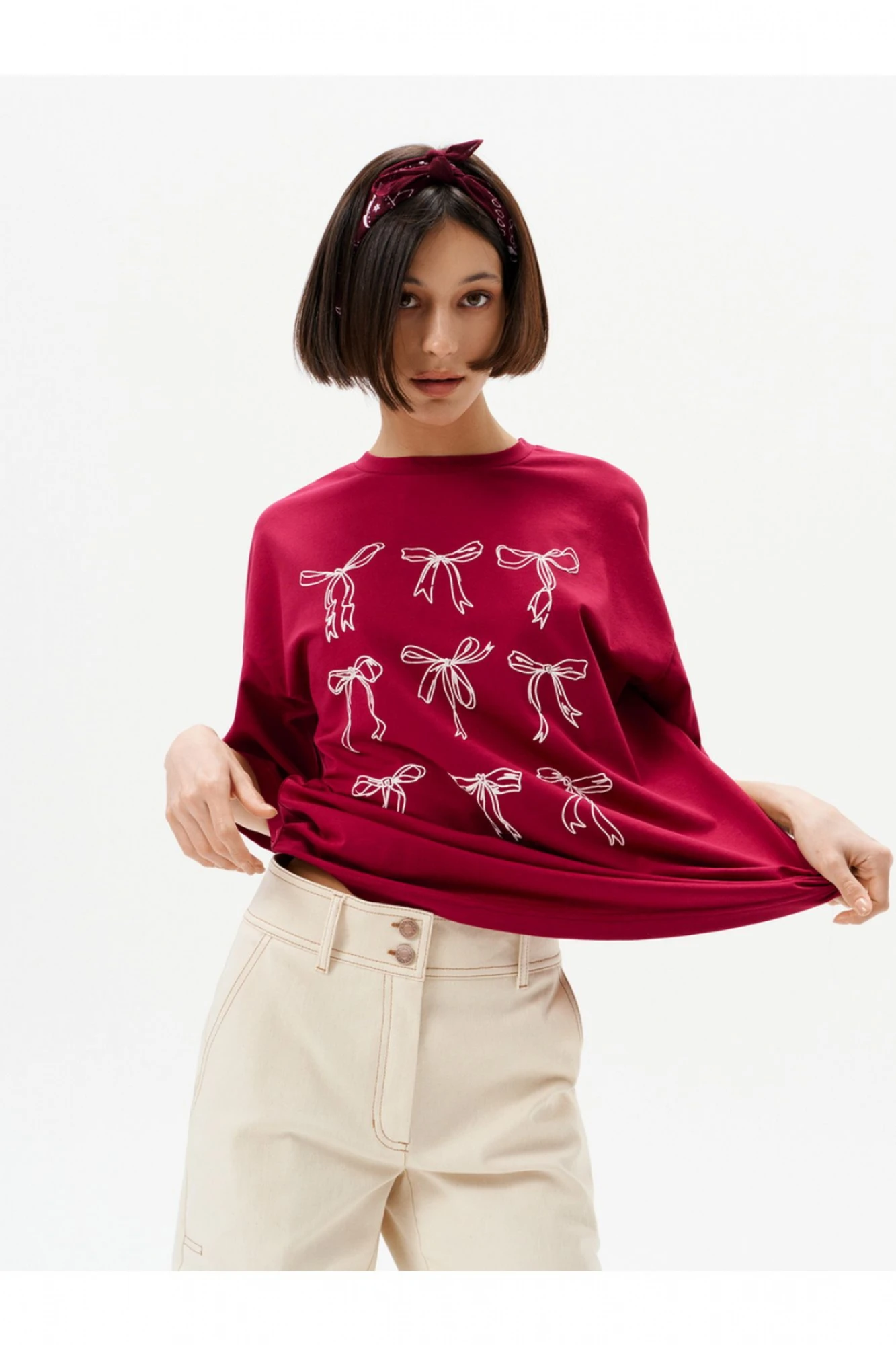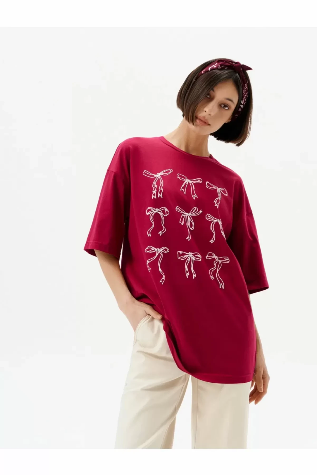 Погрузитесь в мир стиля и комфорта с женской оверсайз футболкой от бренда 10DENCY, украшенной уникальным принтом в виде бантиков. Эта футболка изготовлена из высококачественного хлопка, который обеспечивает приятные ощущения на коже и отлично подходит для повседневного ношения. Принт в виде бантиков добавляет оригинальности и игривости вашему образу, делая эту вещь идеальным выбором для тех, кто хочет выделиться из толпы. Просторный оверсайз крой обеспечивает свободу движений и комфорт, что делает футболку подходящей для разных ситуаций — от уютных прогулок до встреч с друзьями. Легко сочетайте её с джинсами, шортами или спортивными леггинсами, создавая стильные и модные аутфиты. Футболка от 10DENCY станет незаменимым элементом вашего гардероба, позволяя вам оставаться на пике моды без ущерба для комфорта. Обновите свой стиль с этой оригинальной футболкой, которая добавит нотку игривости и шика в ваш повседневный look.