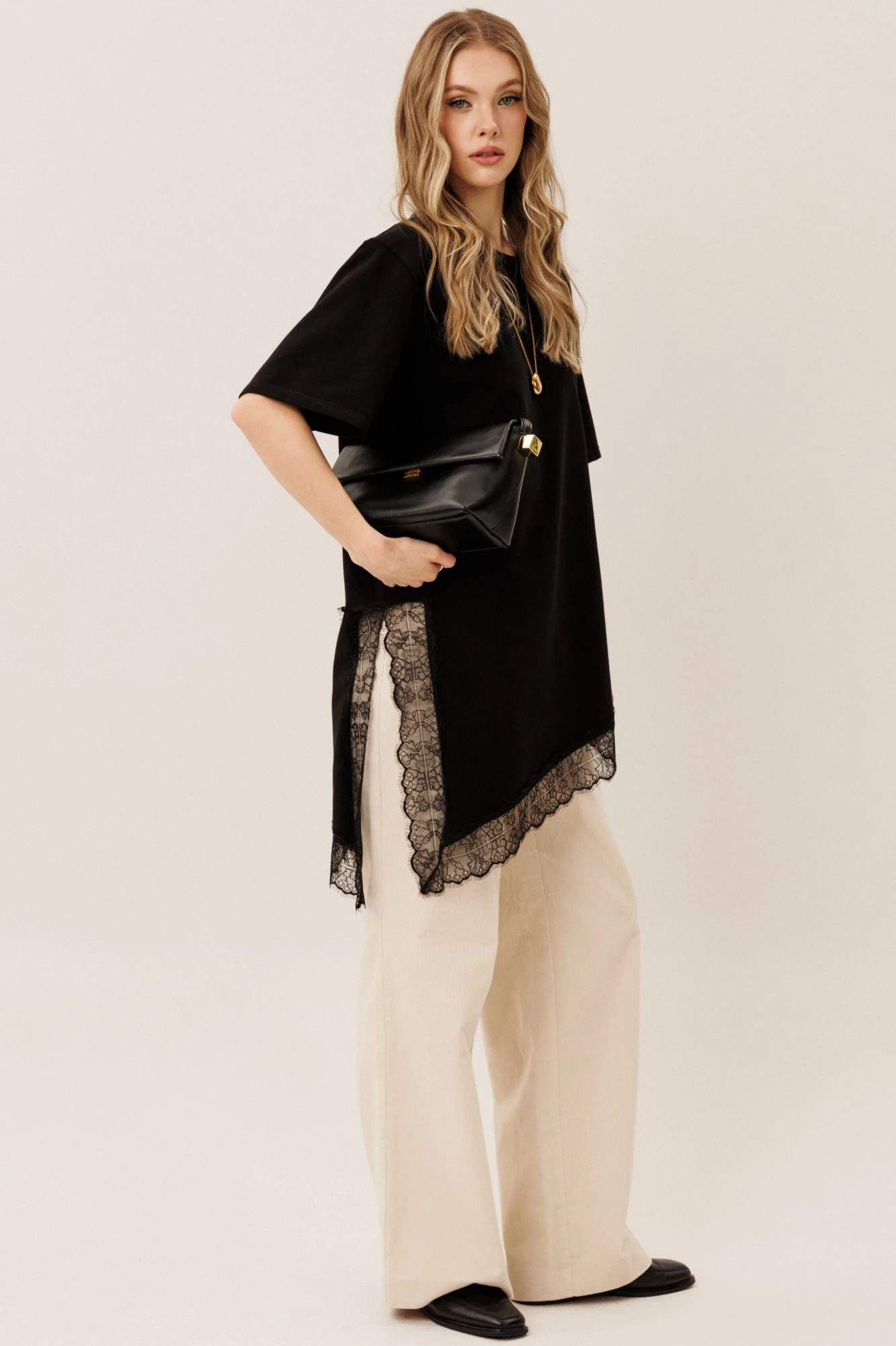 "Ассиметричный крой+трендовое кружево = базовая футболка уже не базовая!