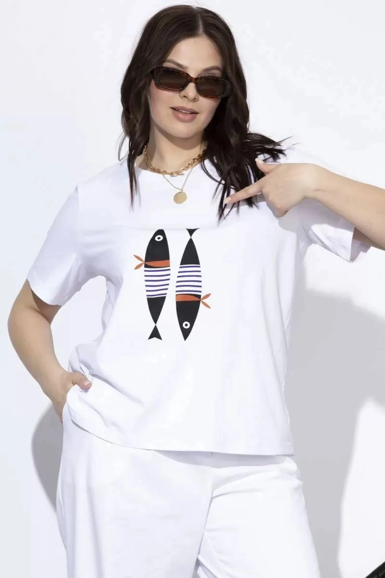 Футболка свободного кроя с круглым вырезом и короткими рукавами. Ткань вискоза.