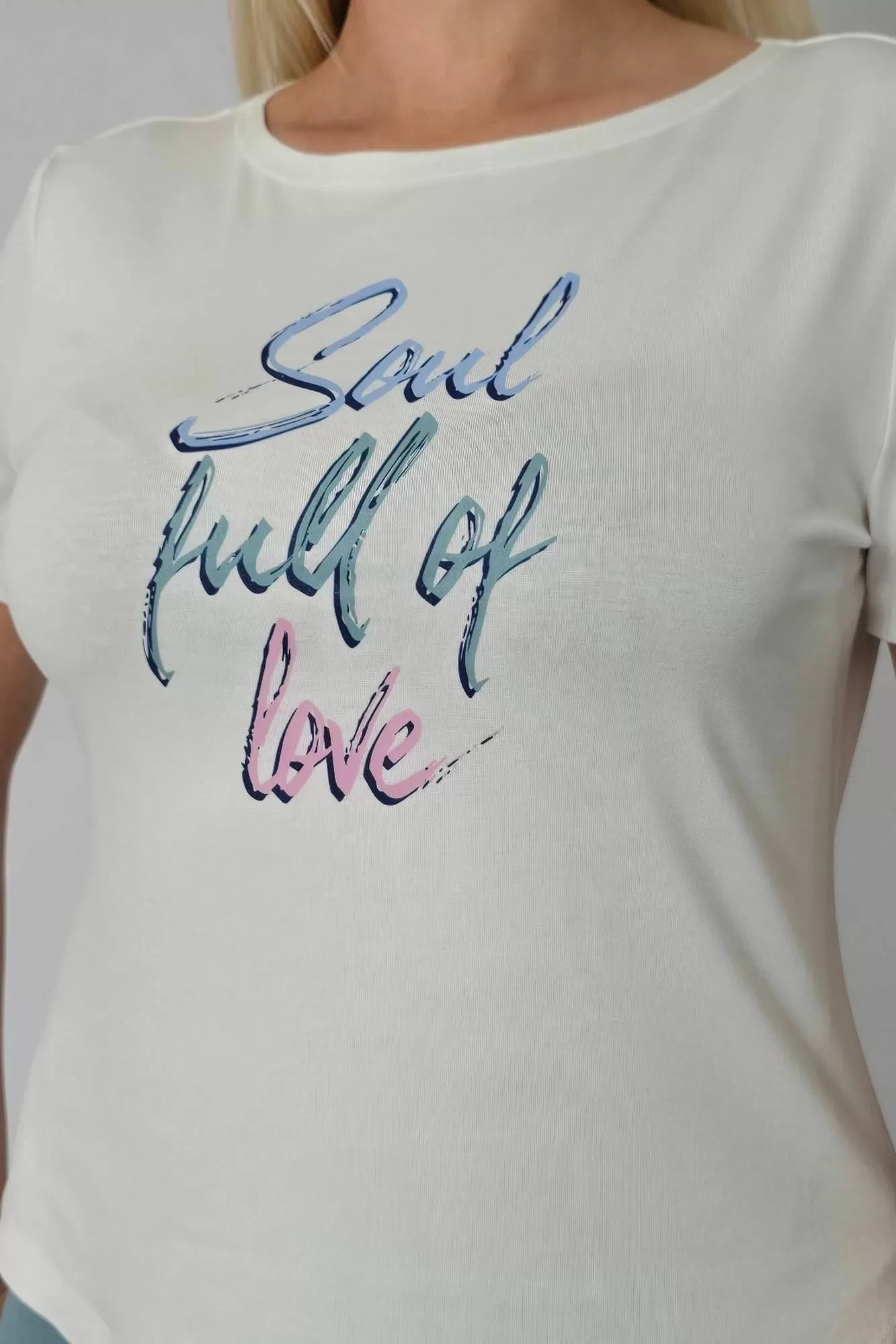 Комбинированный комплект состоит из шорт и футболки выполнен из вискозного трикотажного полотна. Футболка с коротким втачным рукавчиком, на груди - эффектная печать. Шорты выполнены из однотонного трикотажного вискозного полотна, пояс на резинке. Отличный комплект для сна и отдыха.