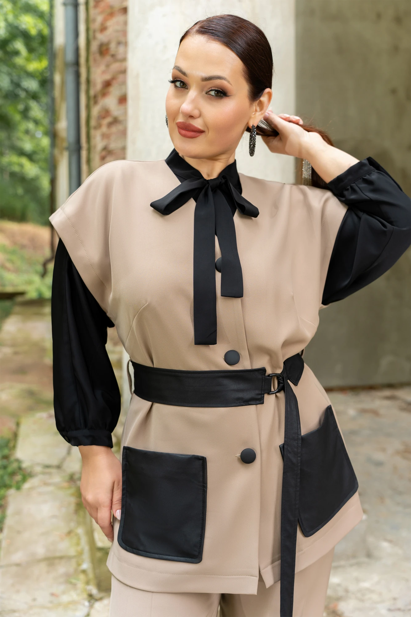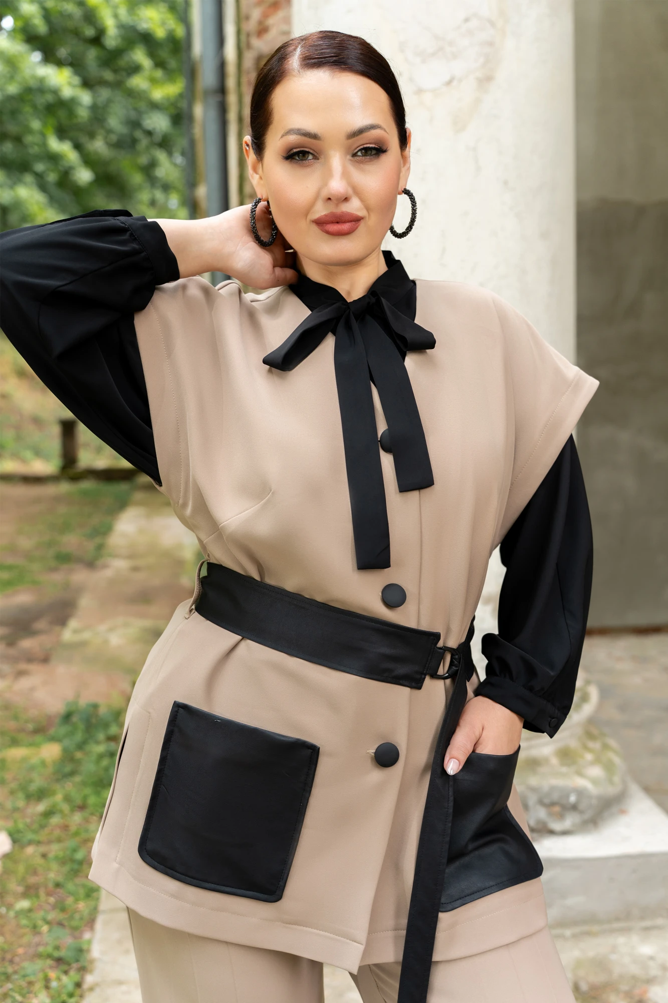 Костюм жилет и брюки из костюмной ткани. Безусловная класика современая и всегда привлекает взгляды.Жилет прямого кроя со съёмным поясом.Жилет с центральной бортовой застёжкой на три петли и три пуговицы. На полочках обработаны накладные карманы из экокожи. По боковым швам обработаны разрезы и шлёвки под съёмный пояс из экокожи.Брюки женские прямого силуэта, современная класическа, по переду пояс со шлёвками, и застёжка на тесьму-молнию и пуговицу, по спинке пояс с эластичной резинкой. Брюки с боковыми наклонными карманами. Брюки со складками по переду.