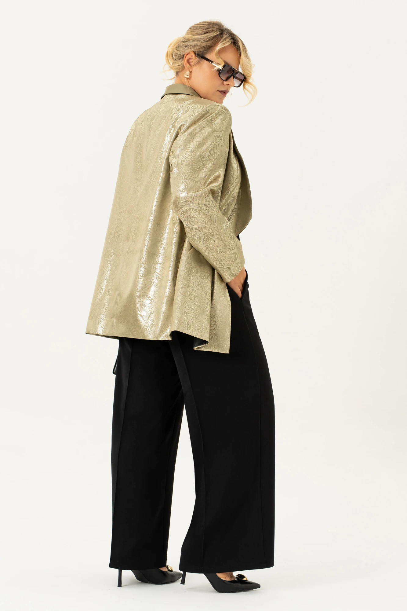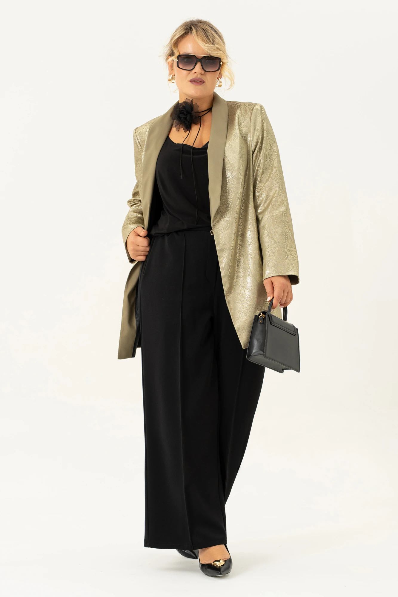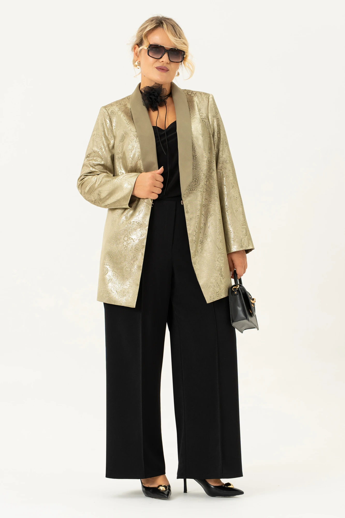 Этот комплект одежды идеально подходит для женщин, которые хотят выглядеть стильно и элегантно на любом мероприятии. Идеальный вечерний наряд, который придаст особый шик Вашему образу. Комплект состоит из брюк , блузы и жакета, и образует абсолютно классическую тройку. Неважно, это деловое собрание или праздничное мероприятие - этот брючный комплект подойдет для любого случая. Базовая модель прекрасно подчеркнет вашу фигуру и придаст вам очаровательный вид. Комплект выполнен из качественной ткани и дополнен жакетом с застежкой на декоративный крючок , которые делают его еще более привлекательным и уникальным. На жакете обработан воротник шалька и карманы в фигурных рельефах. Жакет на подкладке с длинным рукавом. Блуза без рукова из стрейчевой ткани с нагрудными выточками. Брюки-палаццо на эластичной резинке с эмитацией гульфика. По переду расположены карманы с наклонным входом. Нарядный вечерний комплект создаст модный образ на свадьбу, или на вечеринку, а так же подчеркнет Ваш стиль . Брючный комплект женский больших размеров отличается высокой степенью практичности и универсальности,приобретая один комплект- Вы получаете много образов, комплектуя элементы комплекта с другими вещами из своего гардероба!