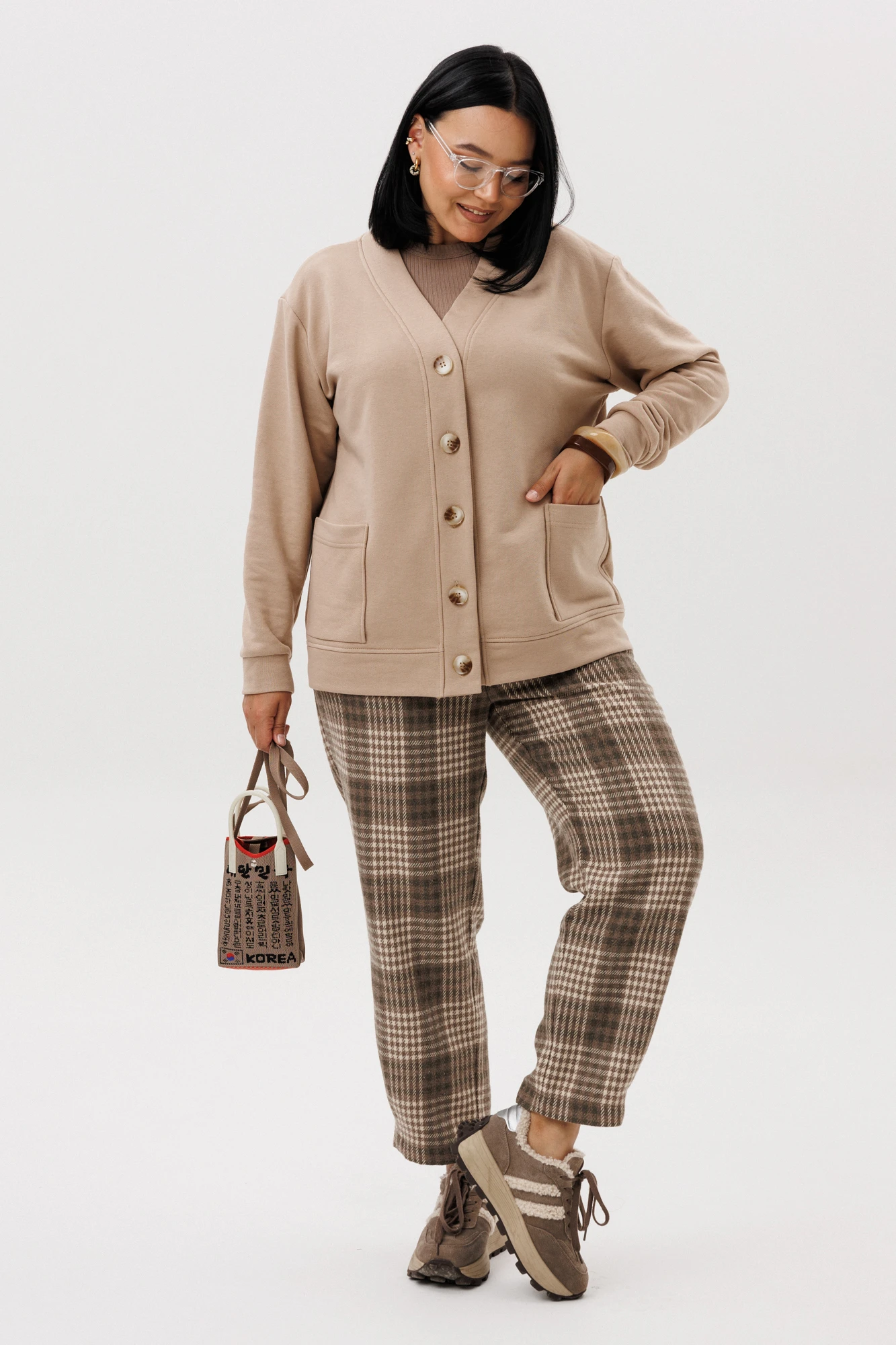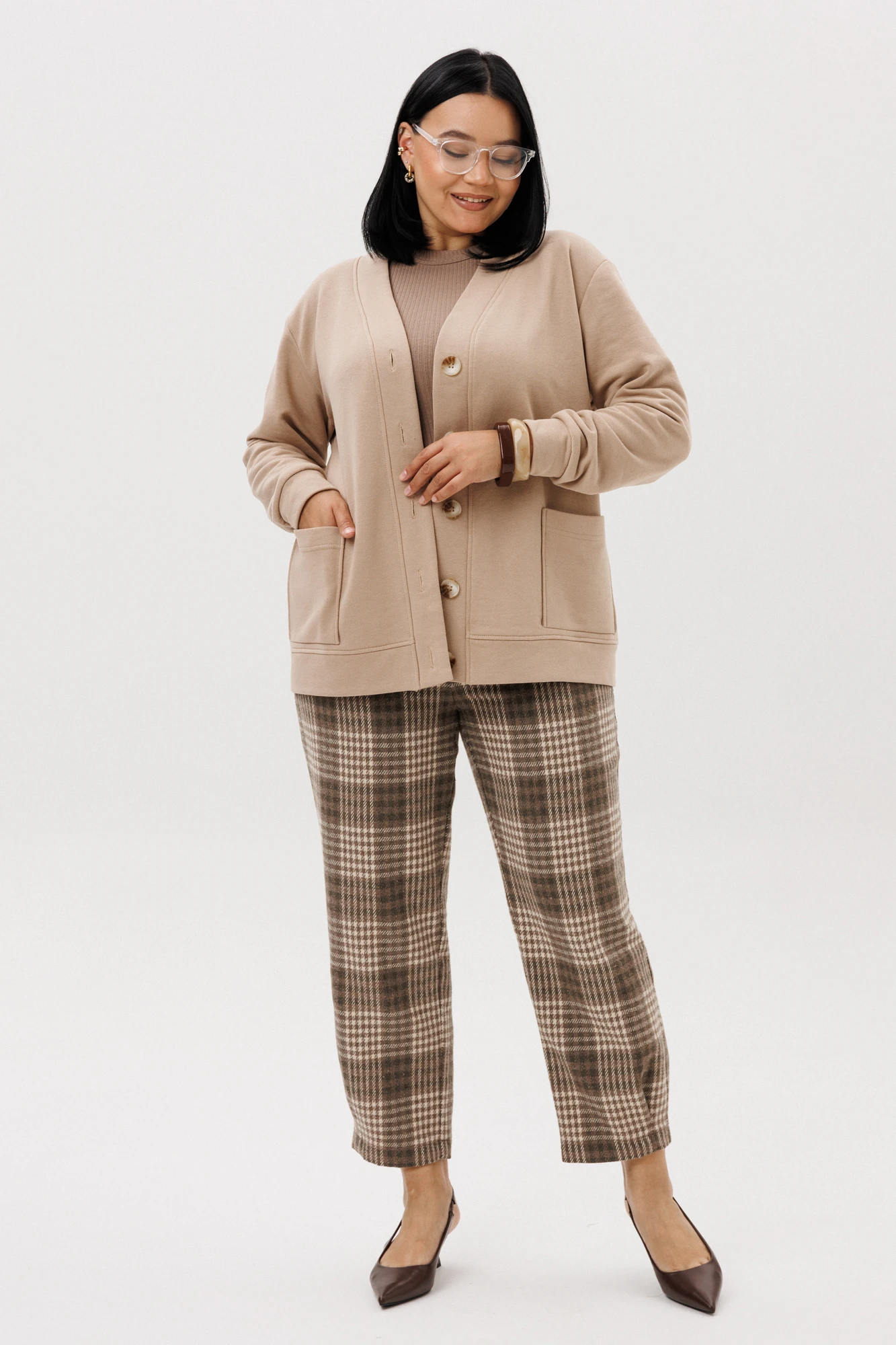 Брючный костюм Anastasia 1301 бежевый/ клетка двойка