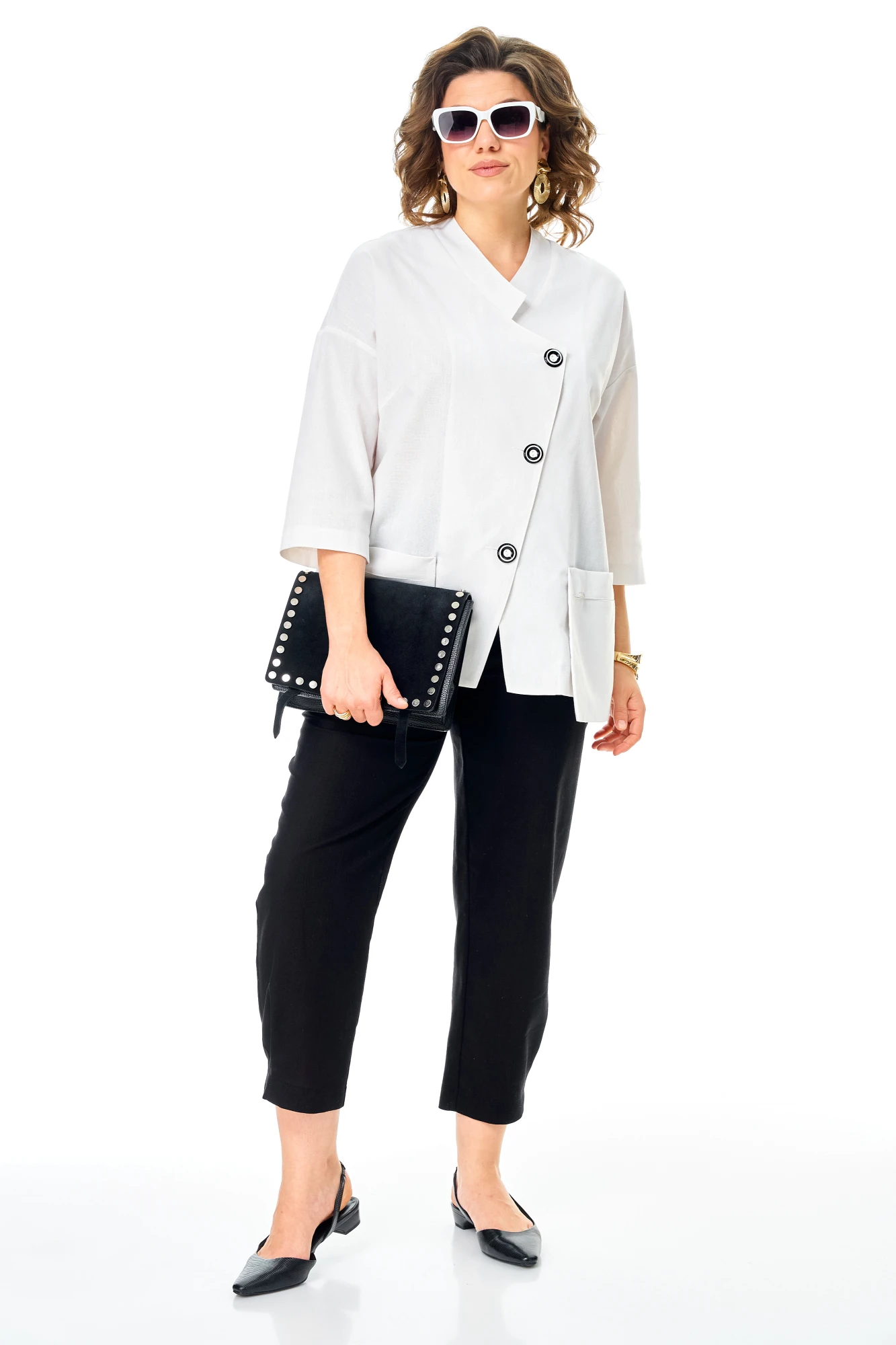 Брючный костюм Anastasia 1345 бело-черный двойка