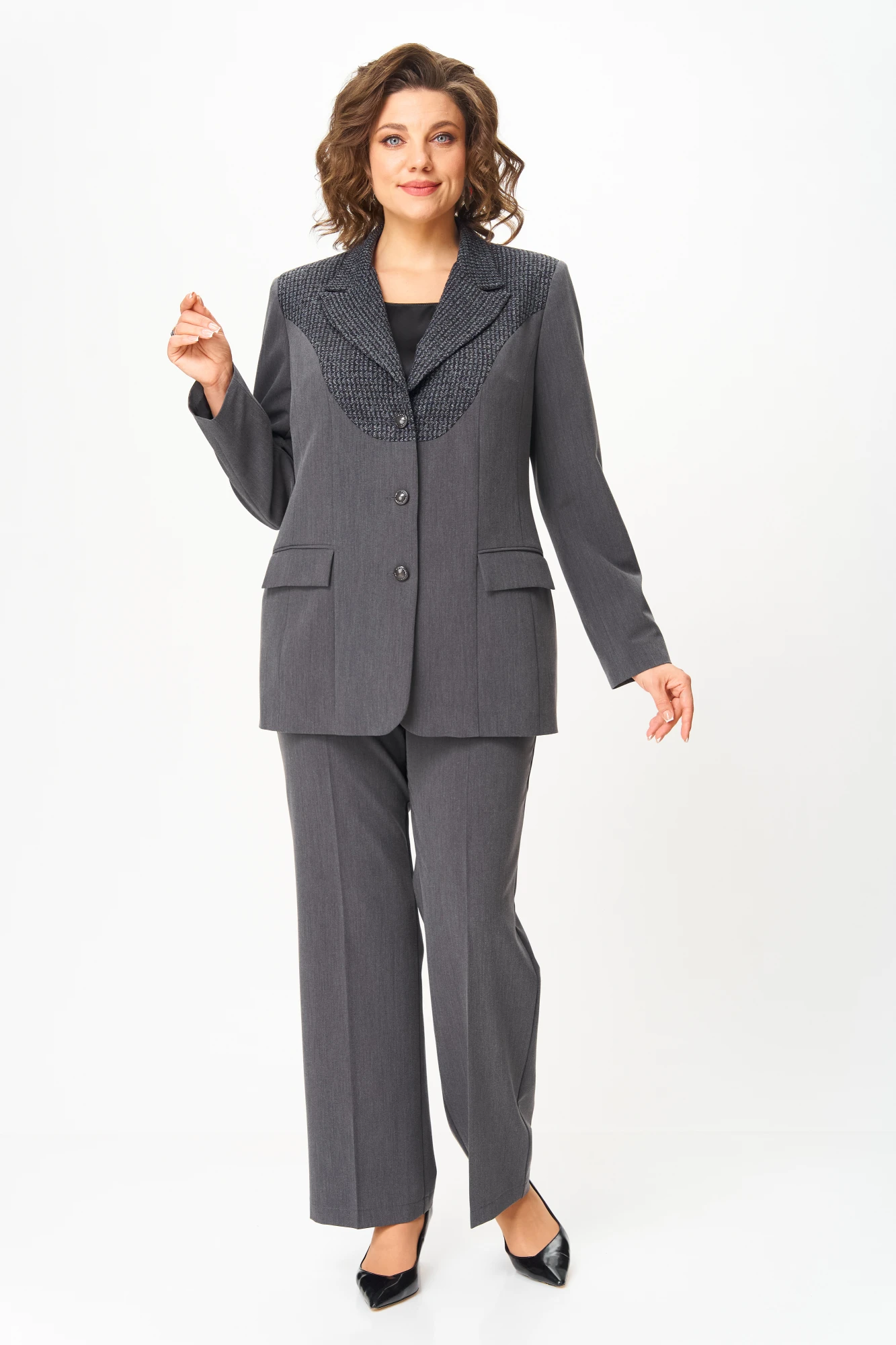 "Костюм полуприлегающего силуэта, состоящий из жакета и брюк, выполнен из однотонной костюмной ткани. Ткань верха имеет механическое растяжение благодаря содержанию в ней эластана. Брючный костюм идеальный вариант как на торжественные мероприятия, так и отличный офисный вариант.