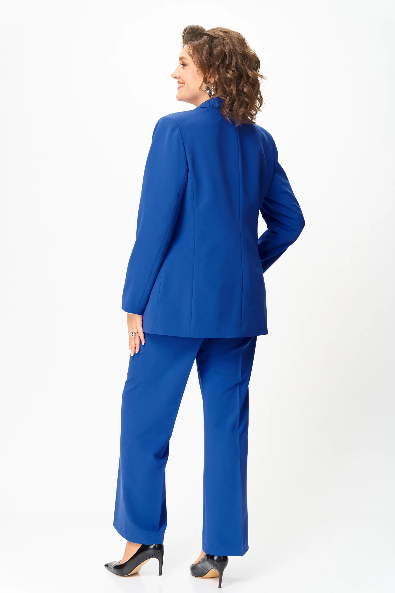 "Костюм полуприлегающего силуэта, состоящий из жакета и брюк, выполнен из однотонной костюмной ткани. Ткань верха имеет механическое растяжение благодаря содержанию в ней эластана. Брючный костюм идеальный вариант как на торжественные мероприятия, так и отличный офисный вариант.