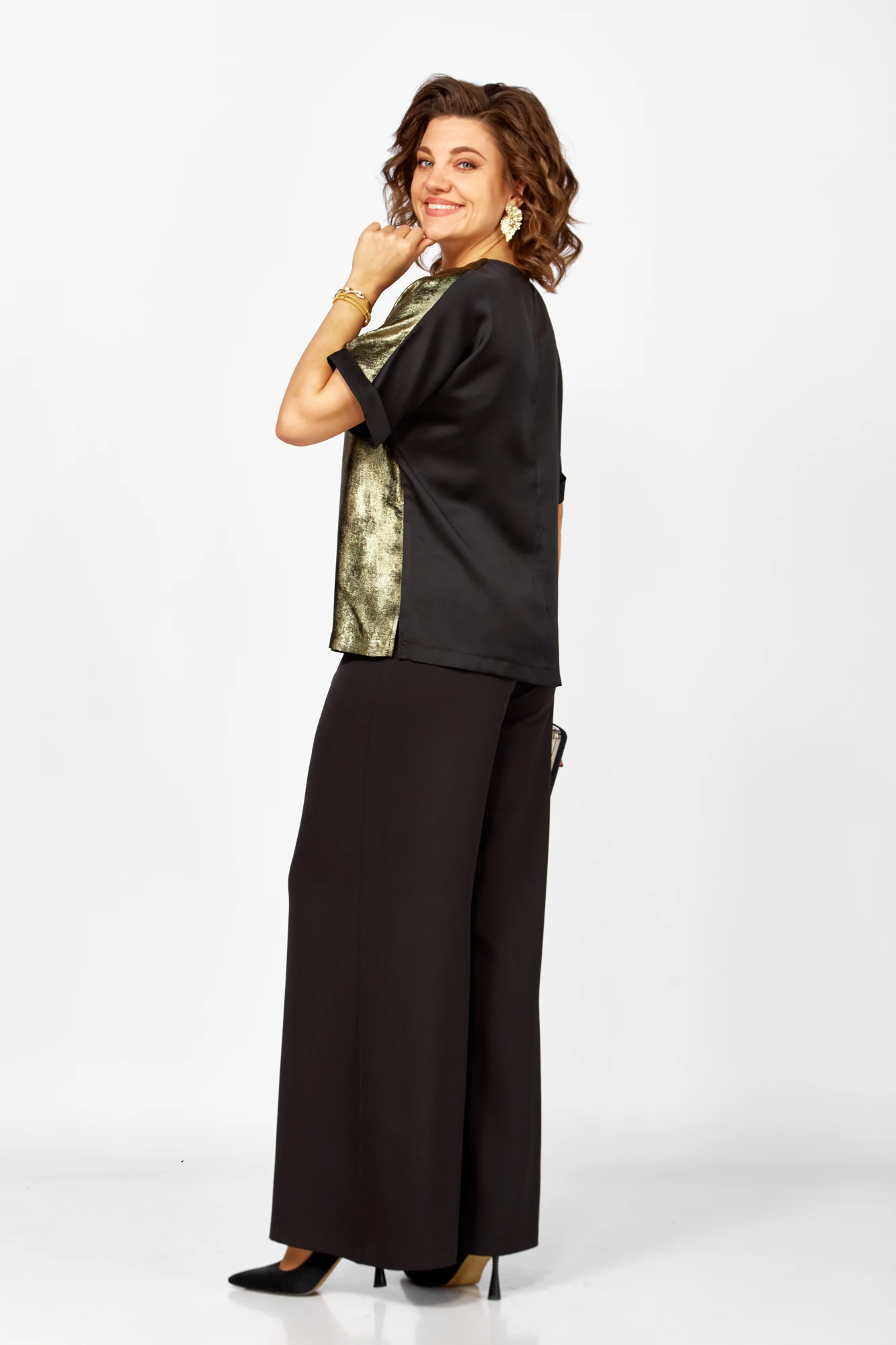 Нарядный женский двухпредметный комплект состоит из свободной блузы и широких брюк "палаццо ".