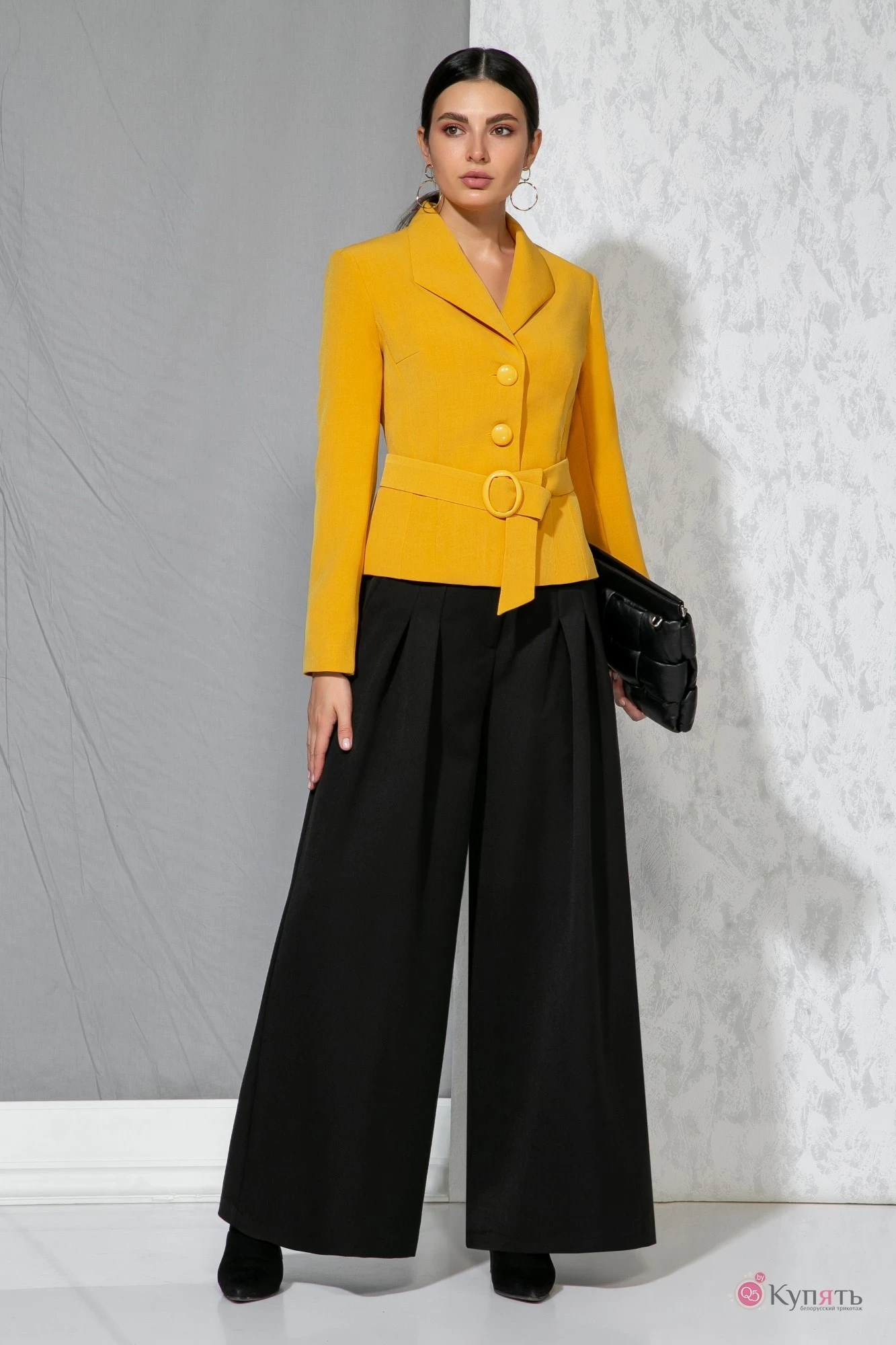 В качестве дополнительного декоративного элемента к жакету прилагается пояс на пряжке.