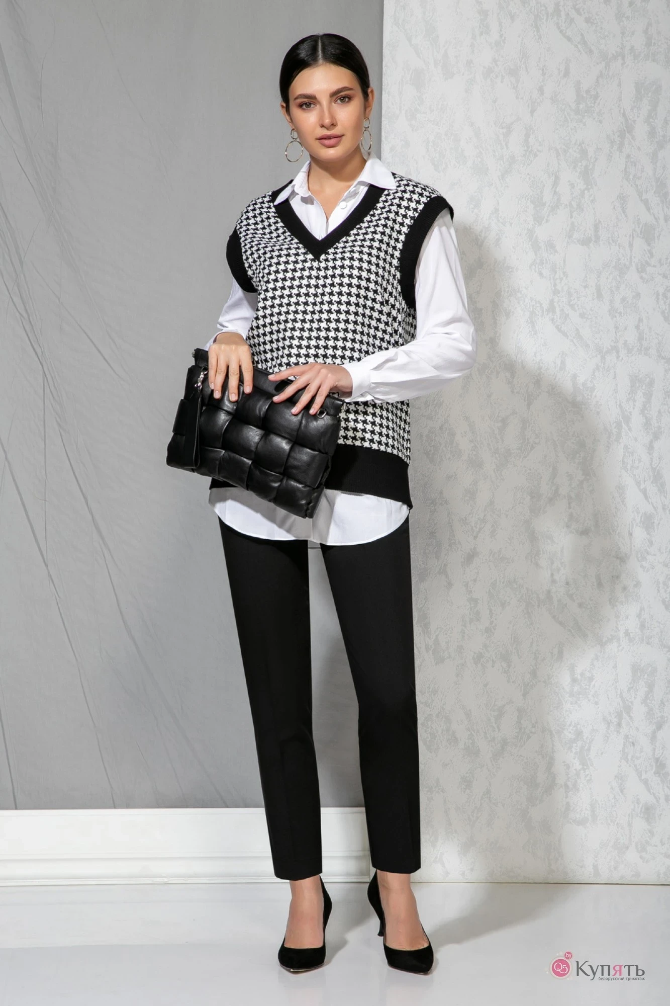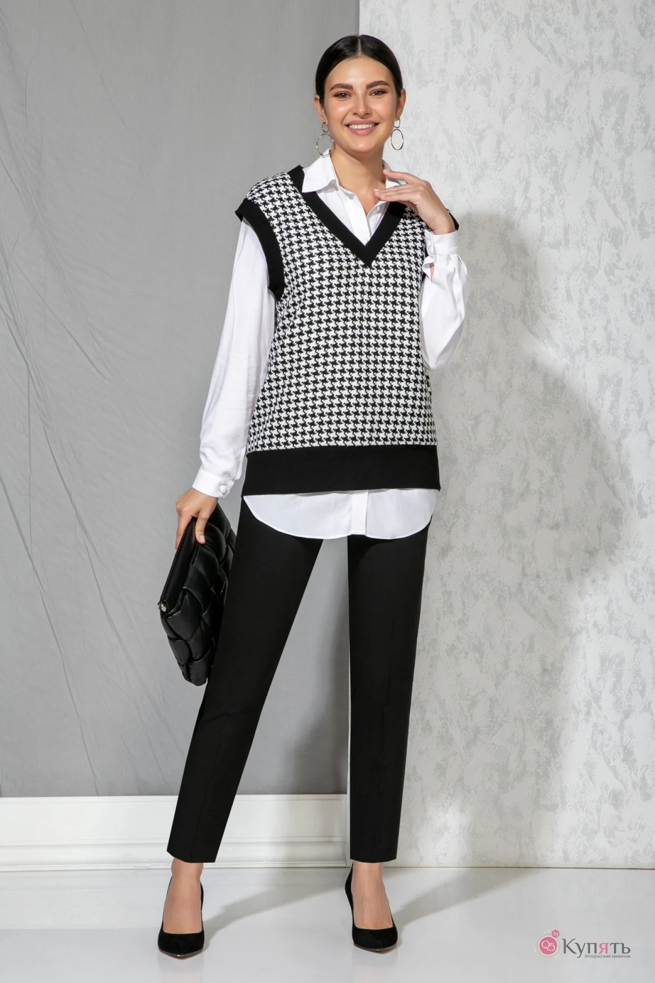 Деловой комплект 3-ка, состоящий из трех элементов: блузки, брюк и жилета.