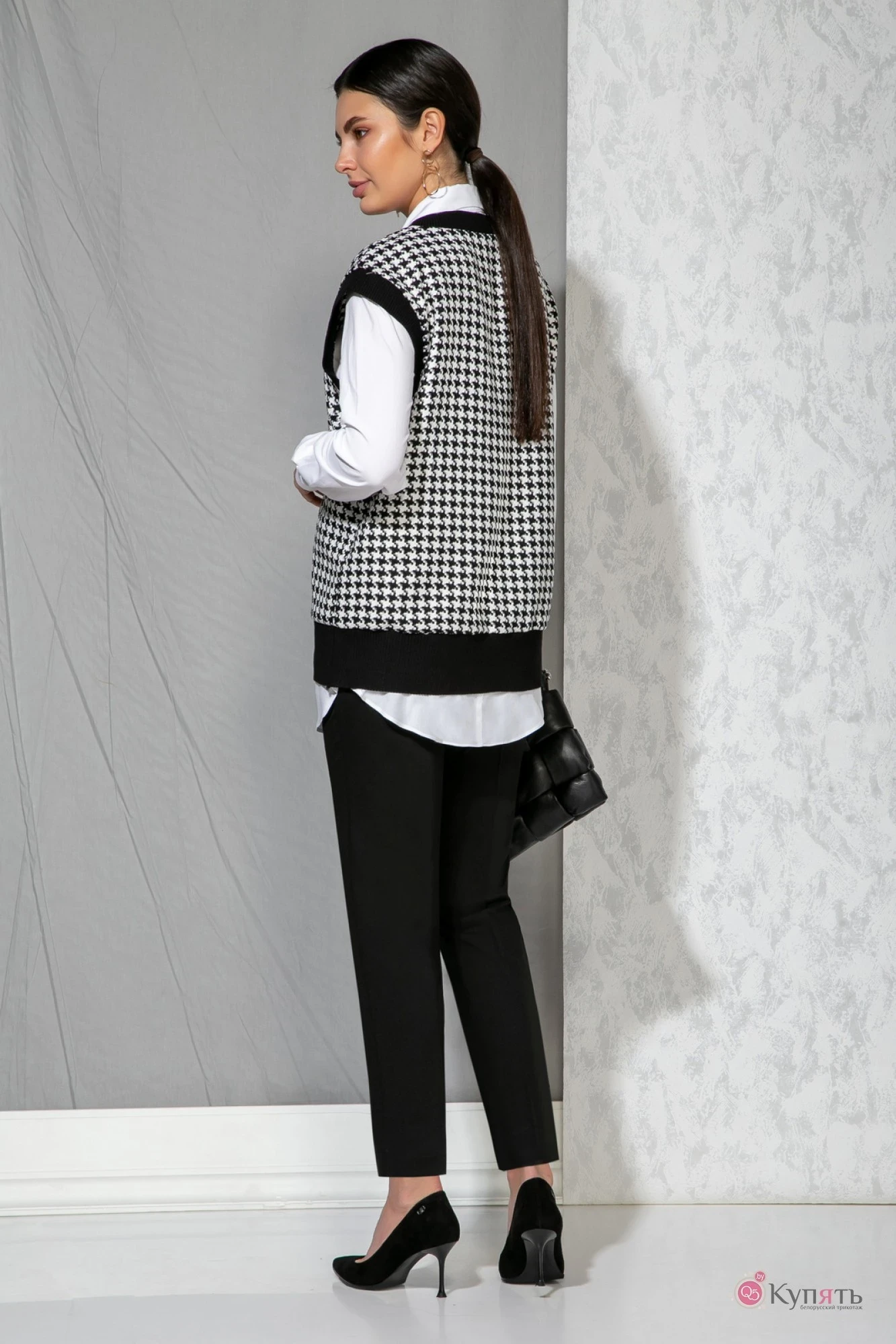 блузка – хлопок 100% брюки – вискоза 95%; спандекс 5% жилет –вискоза 82%; п/э 18%