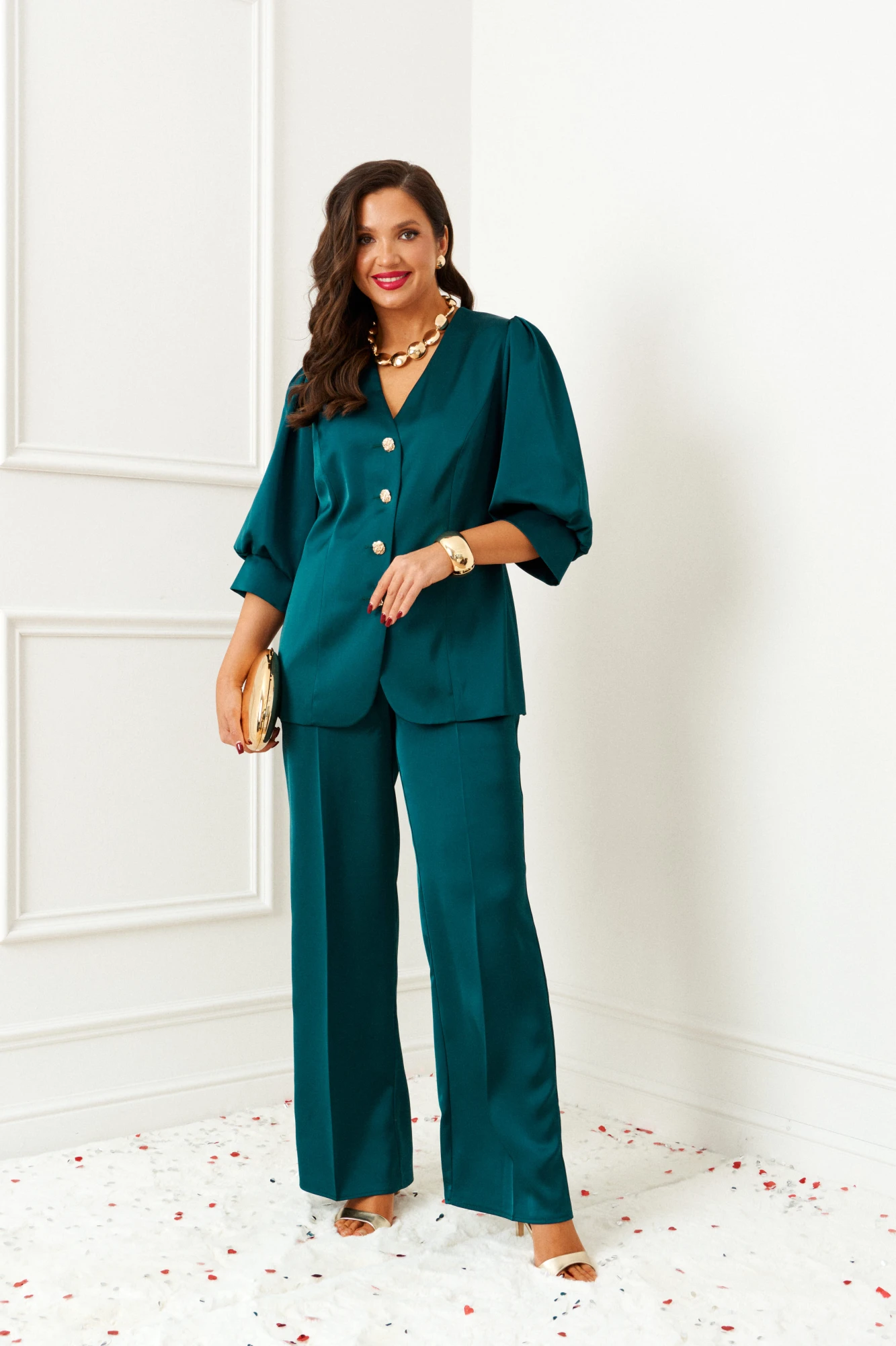 Брючный костюм Beautiful&Free 6382 изумруд двойка
