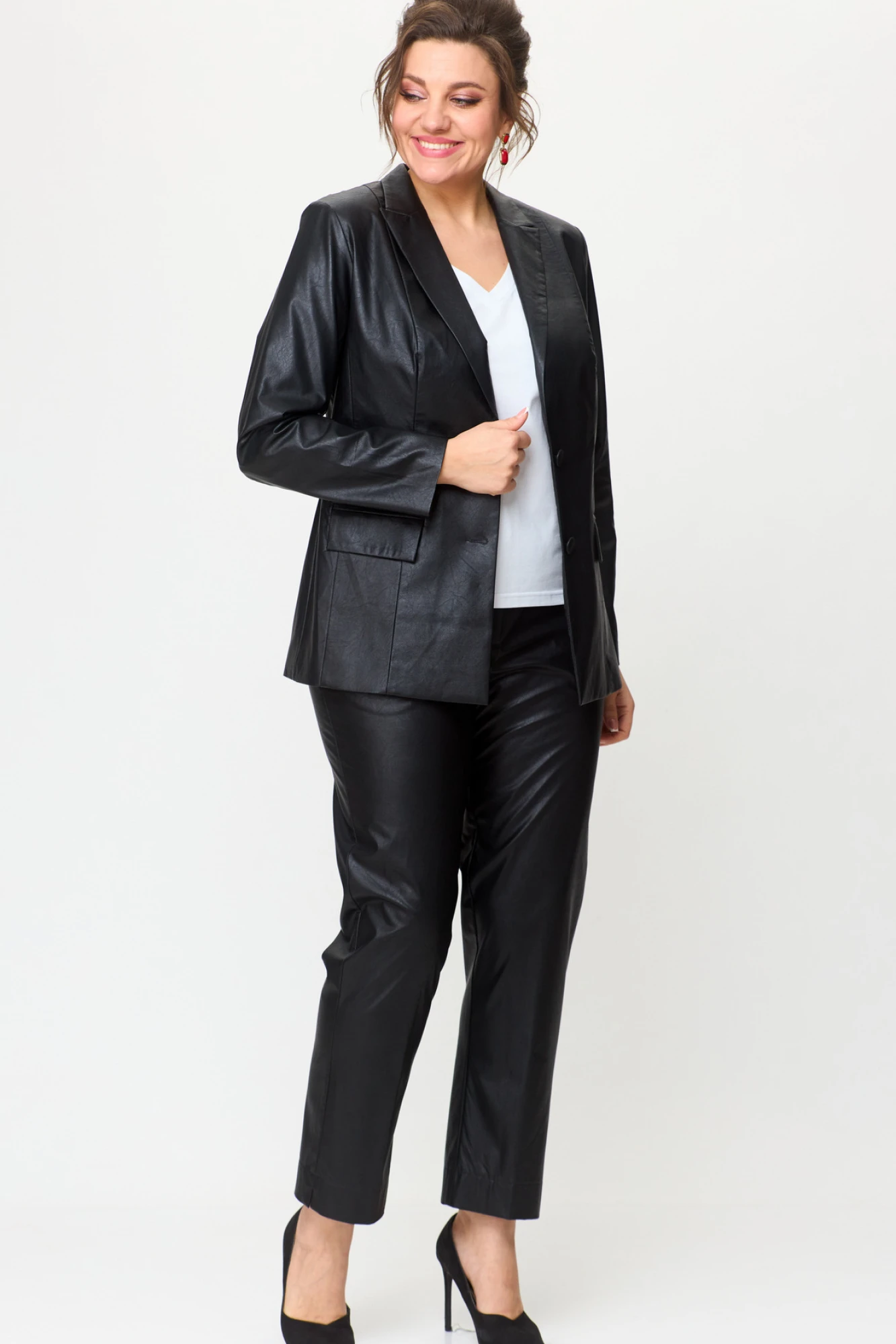 Брючный костюм БелЭльСтиль 412+586 кожа черная двойка