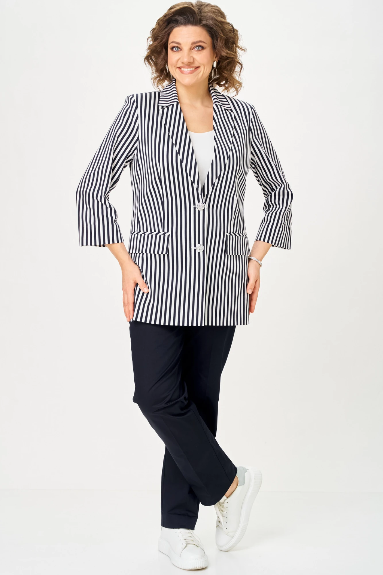 Брючный костюм БелЭльСтиль 762+609 синий+полоска двойка