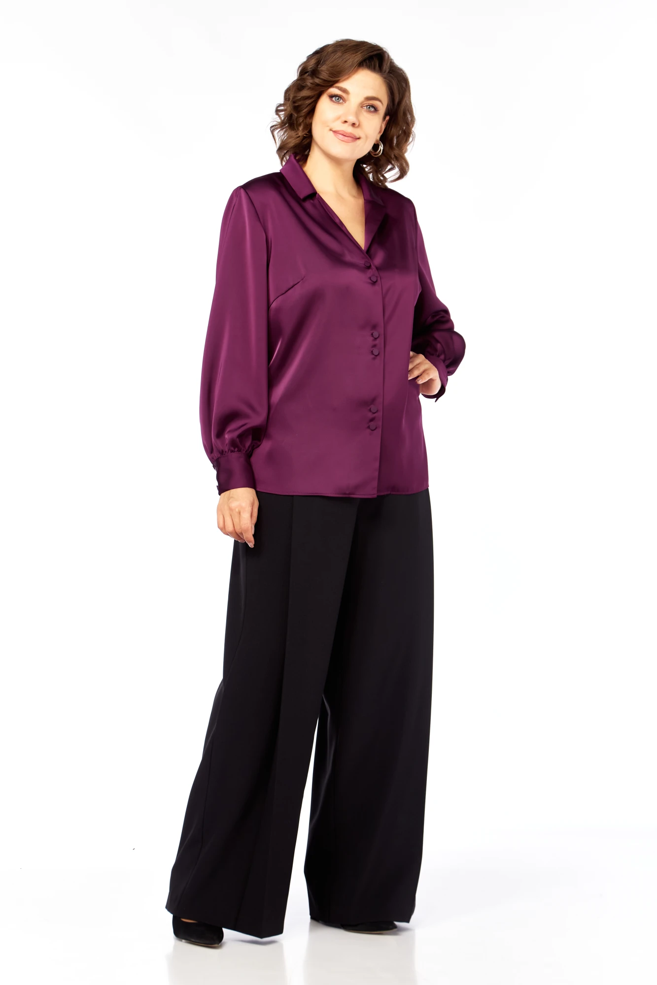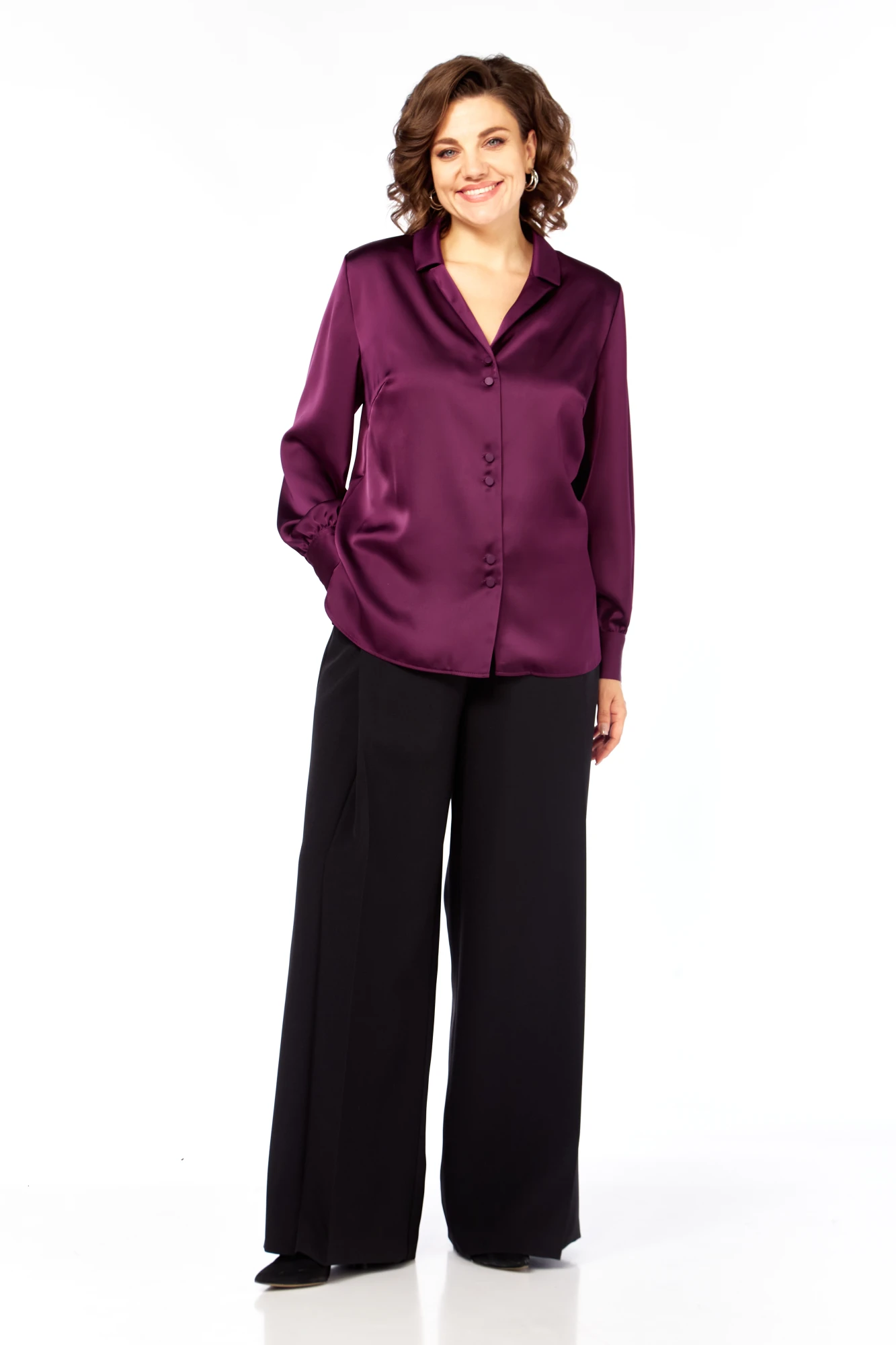 Комплект женский брючный 2-х предметный. Прекрасный вариант для визитов в офис, а так же в место, где уместен деловой стиль. Модель полуприлегающего силуэта с застежкой спереди на пуговицы. Воротник аккуратный отложной. Рукав втачной, по низу оформлен складками и притачной манжетой, застегивающейся на пуговицы. В боковых швах скругленные разрезы. Спинка с вертикальными выточками. Невероятно комфортные, элегантные брюки-палаццо, образ в котором будет привлекать к себе внимание окружающих. Идеально подходит как для офиса, так и для вечернего выхода. Брюки свободные. По переду заложены складки, в боковых швах расположены боковые карманы, застежка-молния. Пояс притачной, сзади на резинке, это обеспечивает комфортную посадку. Широкий крой палаццо добавляет образу легкость и непринужденность, стрелки визуально удлиняют силуэт.