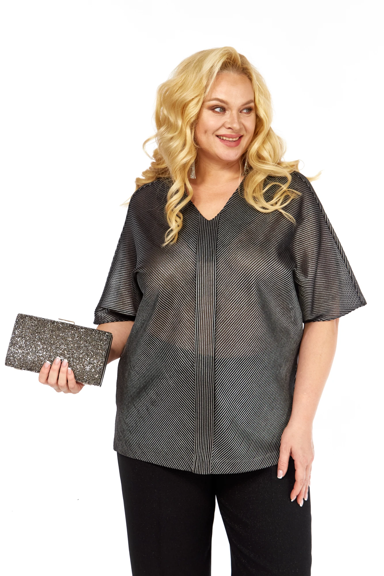 Блуза полуприлегающего силуэта, выполнена из струящейся ткани. Эстетично подчеркнут V-образный вырез горловины, что служит декоративным элементом. Изделие с цельнокроеным рукавом, создает современный стиль образу.