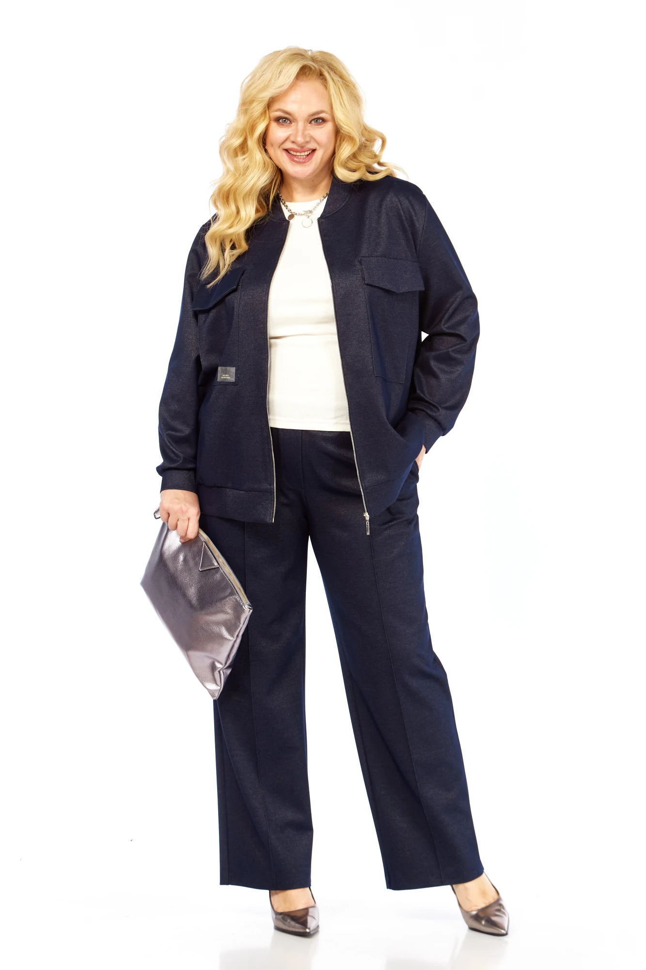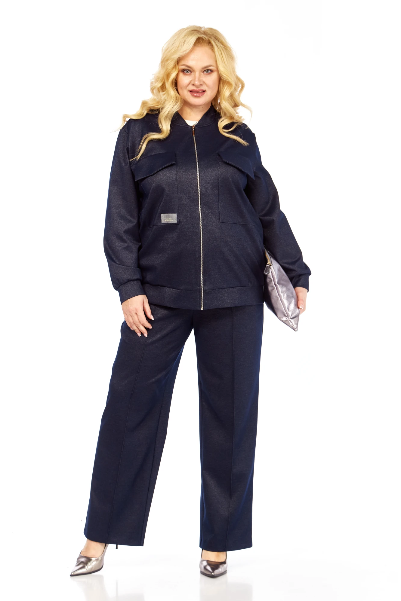 Женский костюм – это идеальное сочетание стиля и комфорта для активного образа жизни. Этот предмет гардероба состоит из двух частей: брюки и бомбер. Изделие выполнено из трикотажного джинса, свободного кроя, с передней застежкой-молнией, функциональные накладные карманы с клапанами, на правом располагается нашивка. Линия плеча слегка спущена. Рукав втачной на манжете. Брюки прямого кроя с отстроченными стрелками, придают расслабленный вид, пояс притачной на резинке в круговую, что обеспечивает комфортную посадку. В боковых швах карманы. Данный комплект не сковывает движение.