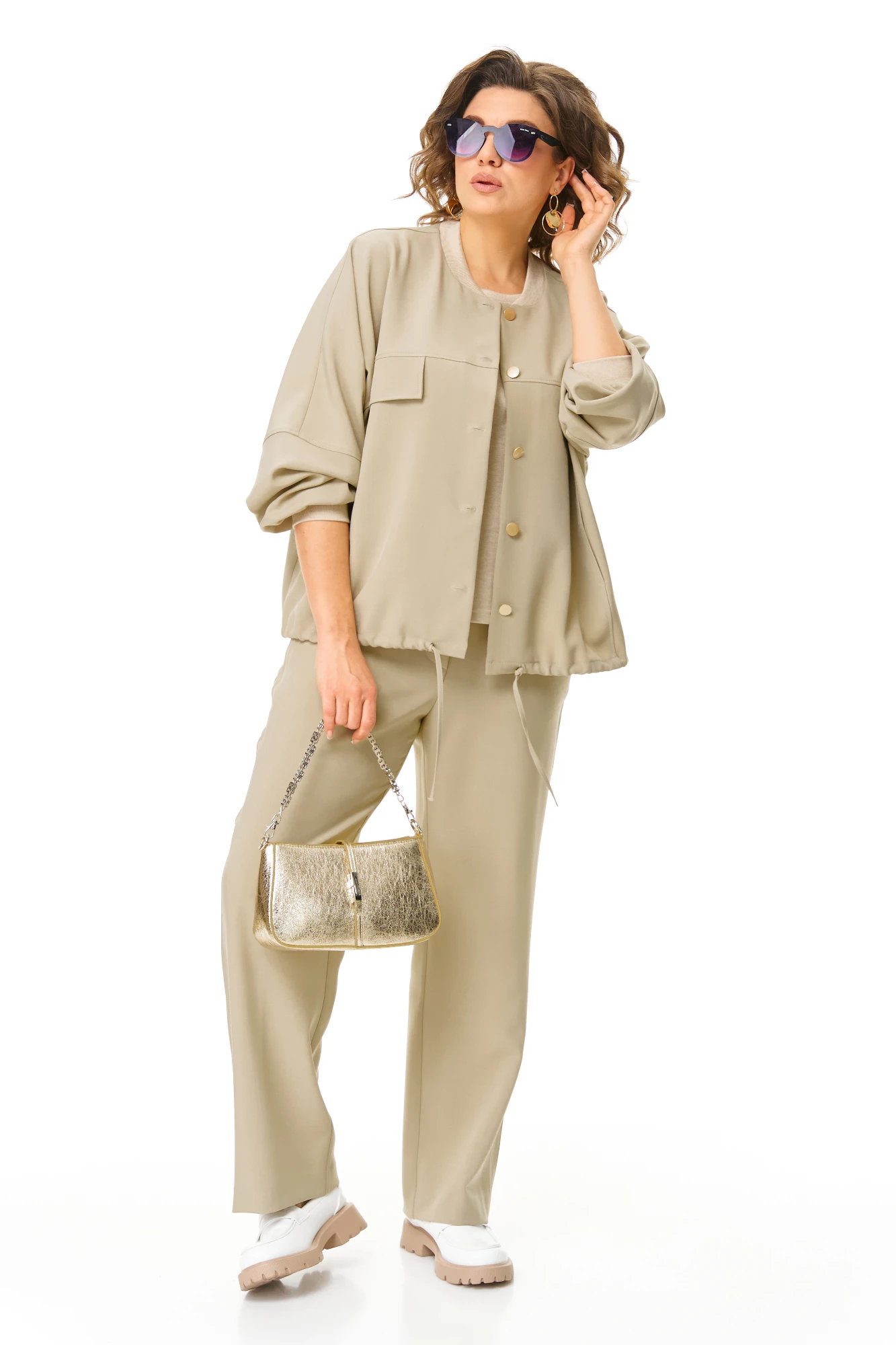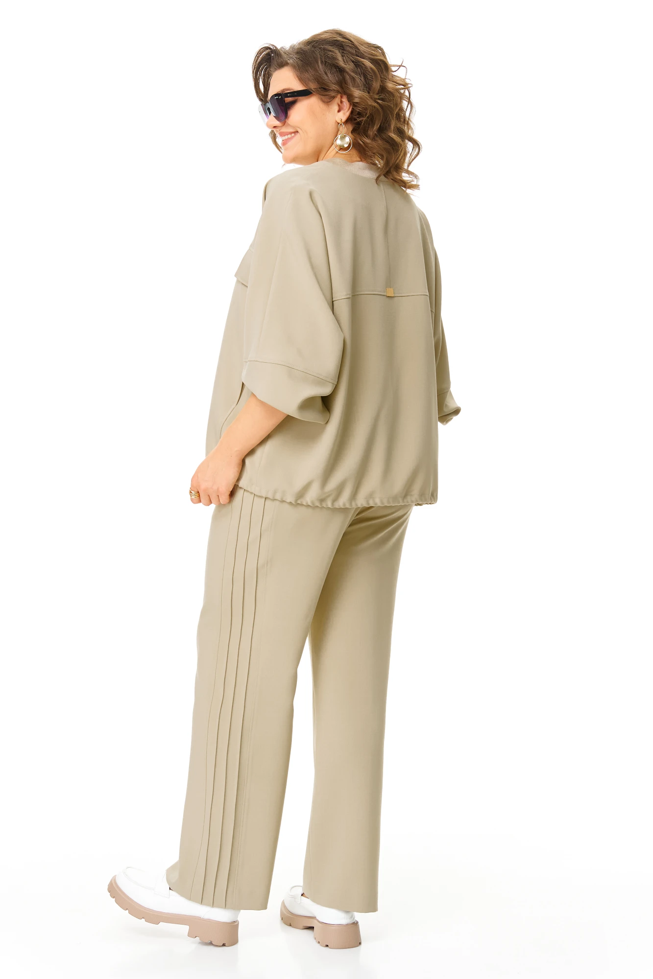 Комплект выполнен из костюмной ткани средней плотности. Топ выполнен из трикотажного полотна.