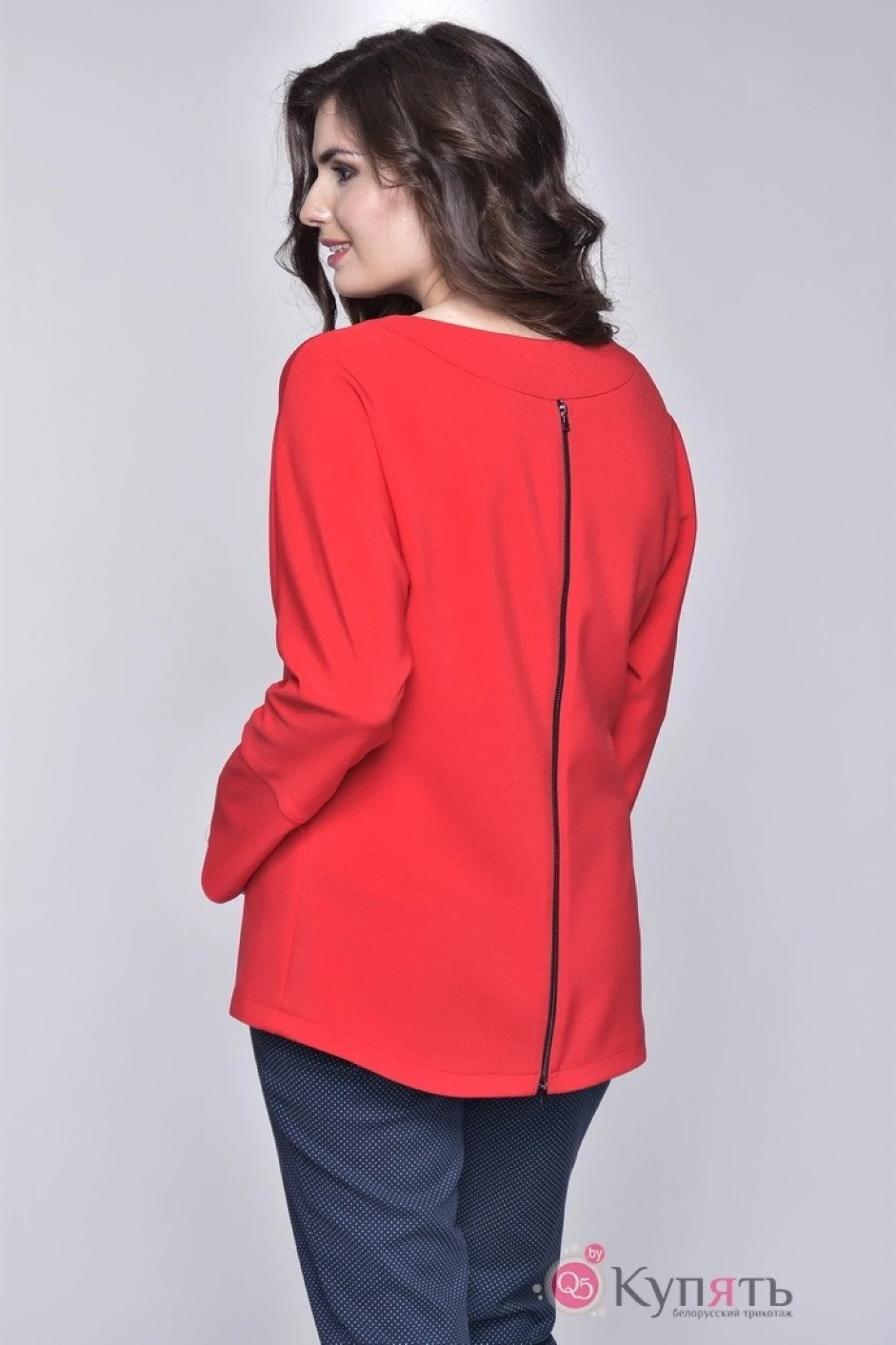 Офисный брючный костюм для бизнес-леди! Блузка покроя "летучая мышь", с горловиной-лодочкой. Низ блузки с одной стороны с фигурным подрезом. По среднему шву спинки- декоративная молния контрастного цвета. Брюки из ткани со стрейчем, темно-синие в мелкую точку, слегка зауженные книзу, на поясе-обтачке, с имитацией карманов-листочек. Модель предназначена для повседневного использования.
