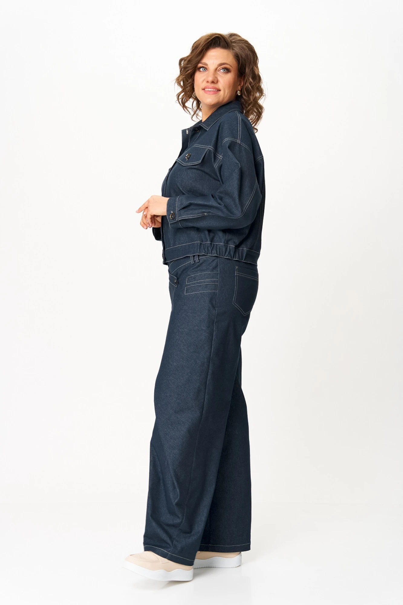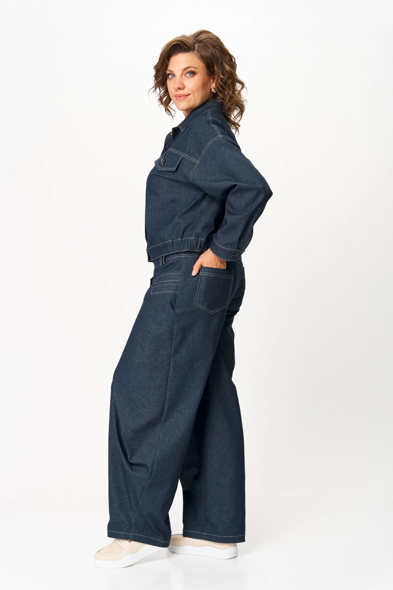 Брючный костюм Кокетка и К 1505 синий джинс двойка