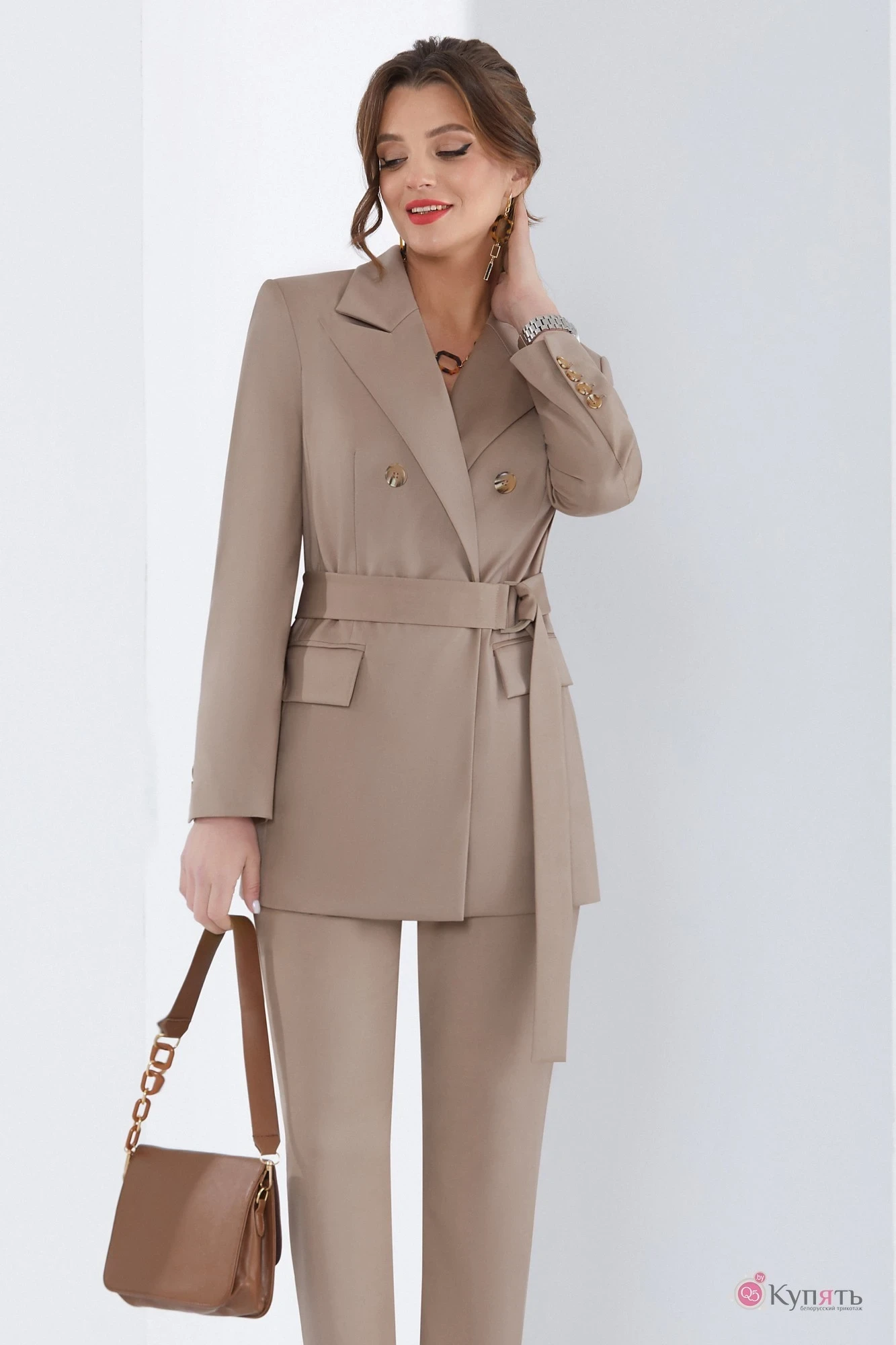 Дизайнерский брючный костюм в минималистичном стиле must-have для современной женщины. Минимализм и строгий стиль – современная классика вне времени. Двубортный жакет прямого силуэта с легким приталиванием и широким воротником пиджачного типа дополнен съемным поясом. Перед оформлен вертикальными полурельефами и прорезными карманами в рамку . Спинка со средним и отрезными бочками. На обтачке спинки жакета выполнена аккуратная вышивка (текстовый логотип бренда). Рукава втачные с отлетной шлицей , застегиваются на пуговицы (обработка как в классических итальянских костюмах). Базовые брюки с косыми карманами заужены к низу. Застежка обработана по классической технологии (гульфик с молнией и пуговица на поясе). Вся обработка выполнена как в классических итальянских костюмах. Жакет на подкладке.