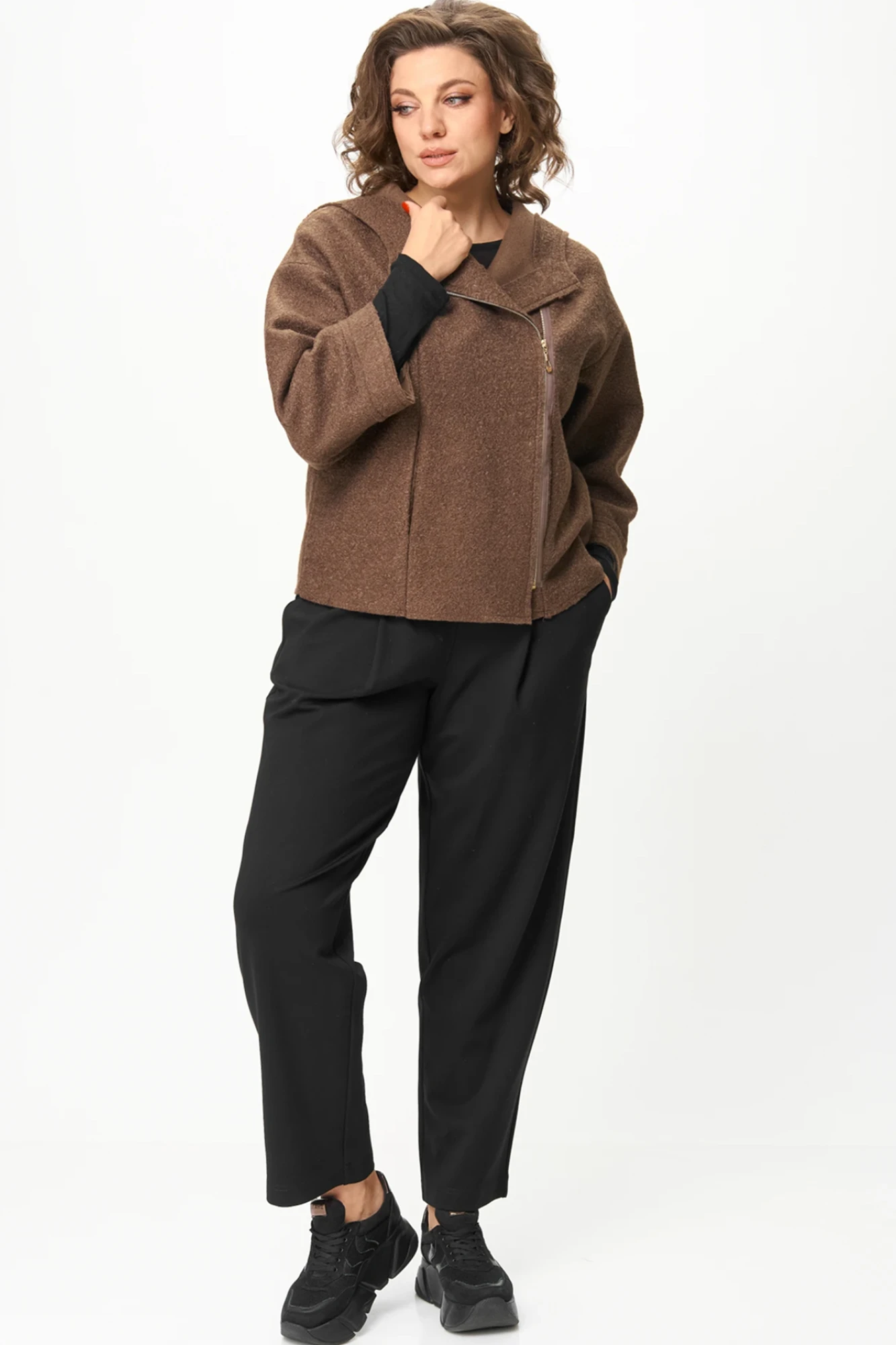 Курточка из букле — особая изюминка комплекта. Благодаря рукаву ¾ она универсальна: зимой её удобно носить в помещении как дополнительный слой, а весной, летом и осенью — как самостоятельную верхнюю одежду. Необработанные края придают образу модную лёгкую небрежность, а молния добавляет практичности и динамики.