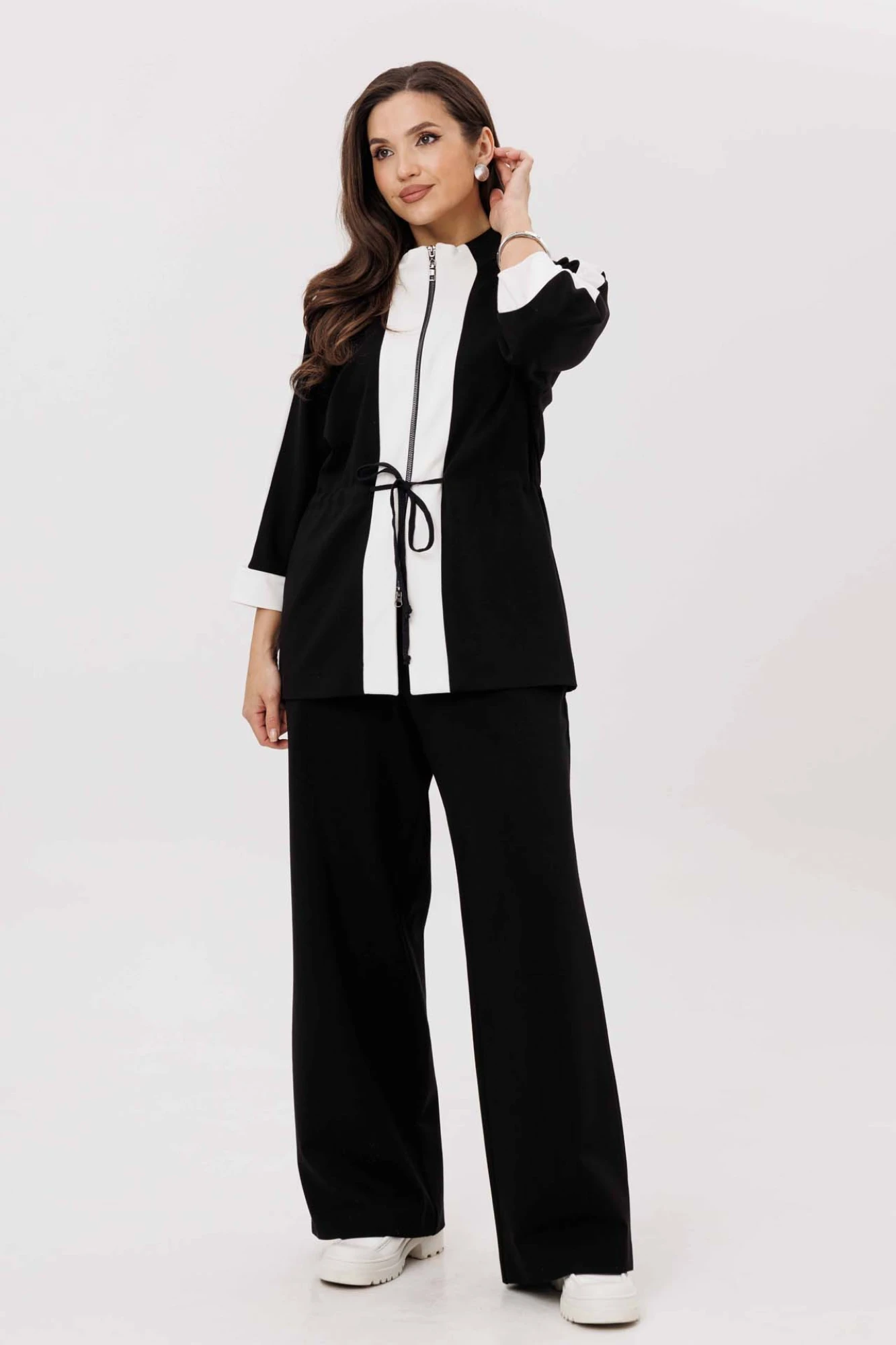 Брючный костюм MisLana 1251 черный/белый двойка