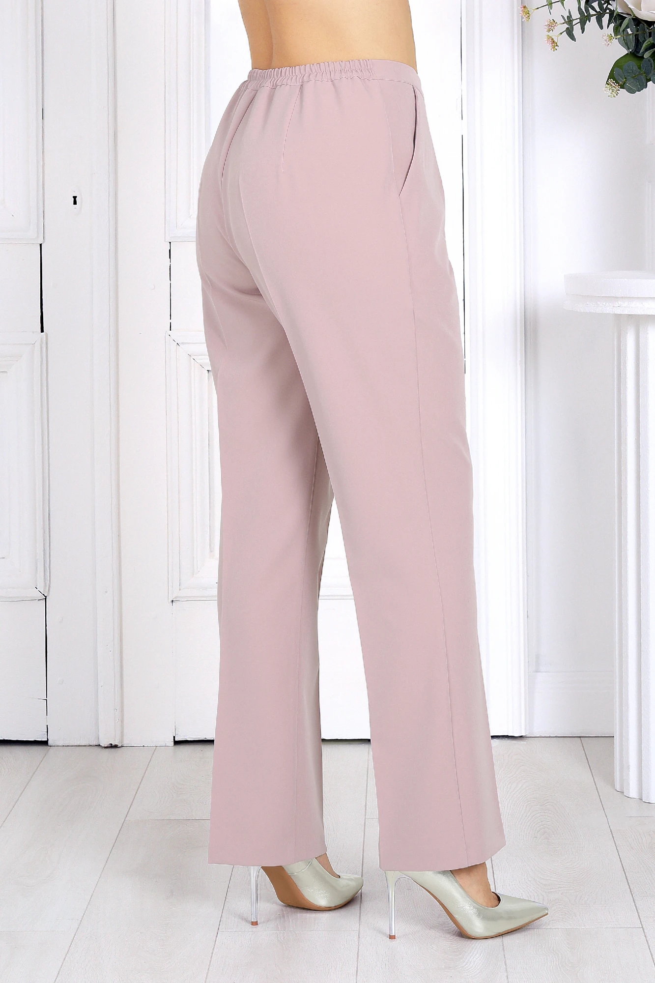 Комплект брючный 3-х предметный, состоящий из кардигана, выполненного из гипюра, джемпера, выполненного из трикотажного полотна «масло» и брюк, выполненных из костюмно-плательной ткани. Кардиган, полуприлегающего силуэта, длиной по середине спинки 107 см от шва втачивания воротника. Перед с нагрудными вытачками, выходящими из пройм. Борта переда обработаны притачными планками из костюмно-плательной ткани. Спинка с талиевыми вытачками. Низа переда, спинки оформлены фестонами. Горловина спинки и переда округлая, по переду углубленная, с воротником-стойкой. Концы воротника прямоугольной формы. Кардиган с застежкой на декоративный крючок на уровне воротника. Воротник выполнен из костюмно-плательной ткани. Рукава втачные, одношовные. Длина рукавов 51 см. Низа рукавов оформлены фестонами. Джемпер полуприлегающего силуэта, длиной по середине спинки 66 см. Боковые части переда с рельефами от горловины до низа, и центральной частью переда, переходящей в прямоугольный вырез горловины. Горловина переда и спинки округлая, углубленная, окантованная. Спинка с талиевыми вытачками. Рукава втачные, одношовные, длиной 21 см. Брюки классические, с посадкой на талии, на притачном поясе, с застёжкой на тесьму-«молния», расположенную в среднем шве передних половинок, и 1 петлю и 1 пуговицу на поясе. Передние и задние половинки брюк с талиевыми вытачками, идущими от пояса вниз, с заутюженными стрелками, с боковыми наклонными карманами на передних половинках. Для лучшего прилегания брюк в области талии в поясе со стороны спинки вставлена резинка.