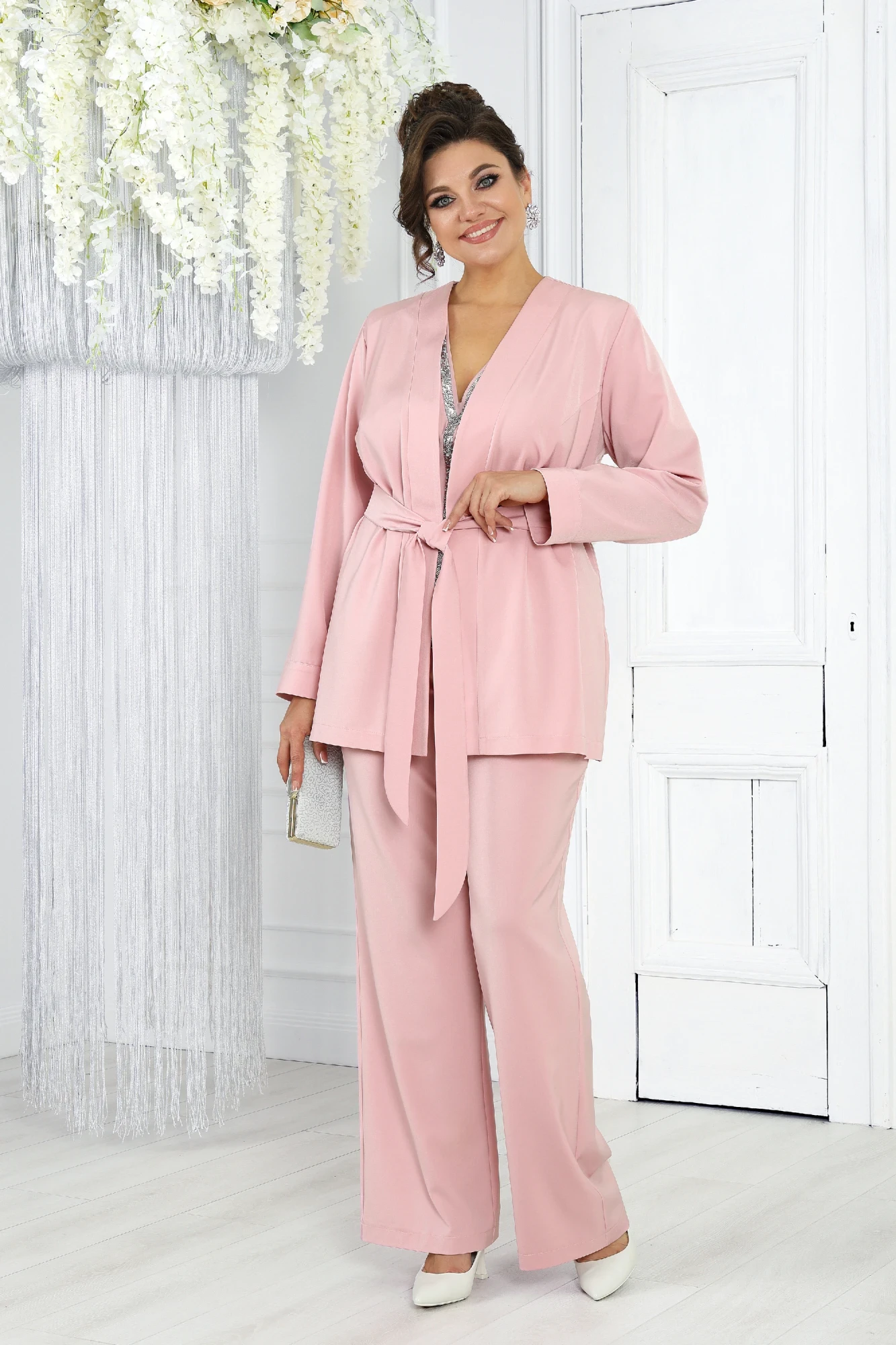 Брючный костюм Нинель Шик 6033 пудра тройка