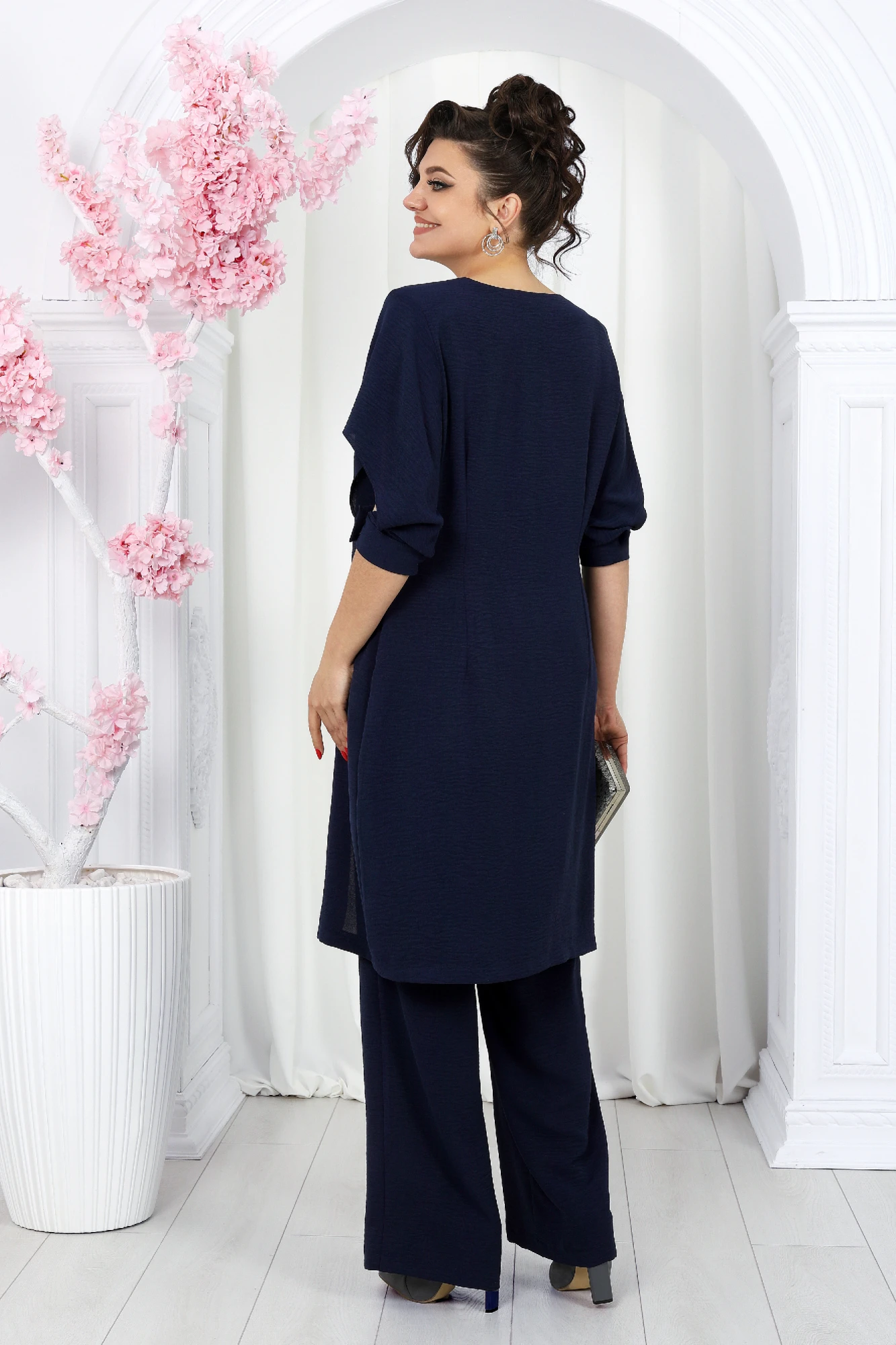 Подарите себе идеальный летний костюм — брючную двойку из струящейся туники и безупречных брюк. Этот комплект создан для тех, кто хочет блистать на любом мероприятии, сохраняя непревзойдённый комфорт!