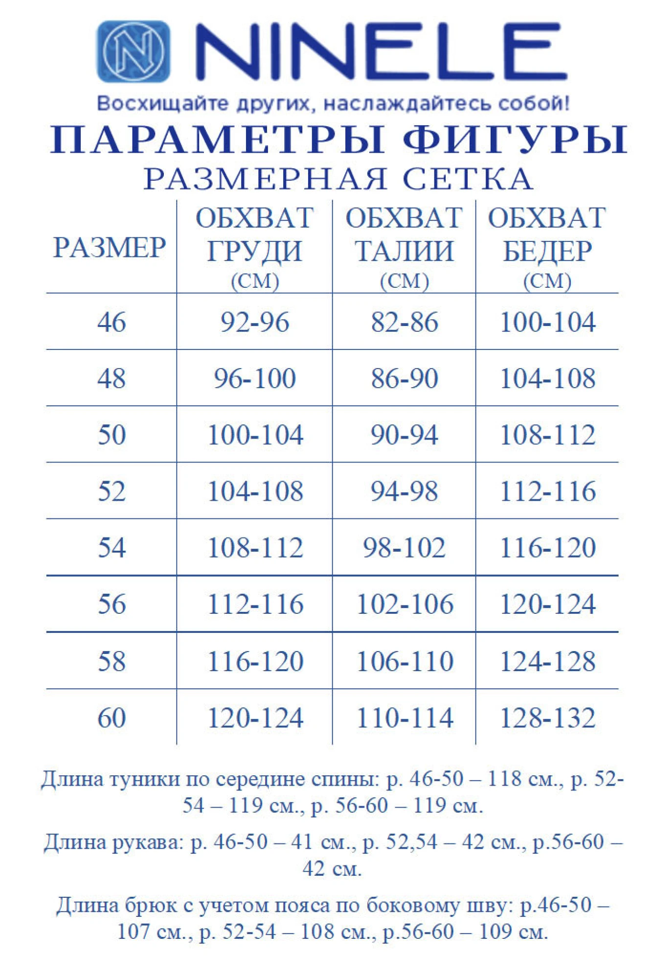 Длина туники (по середине спинки) – 118 см (46-50 р-р), 119 см (52-60 р-р); длина рукава – 41 см (46-50 р-р), 42 см (52-60 р-р).
