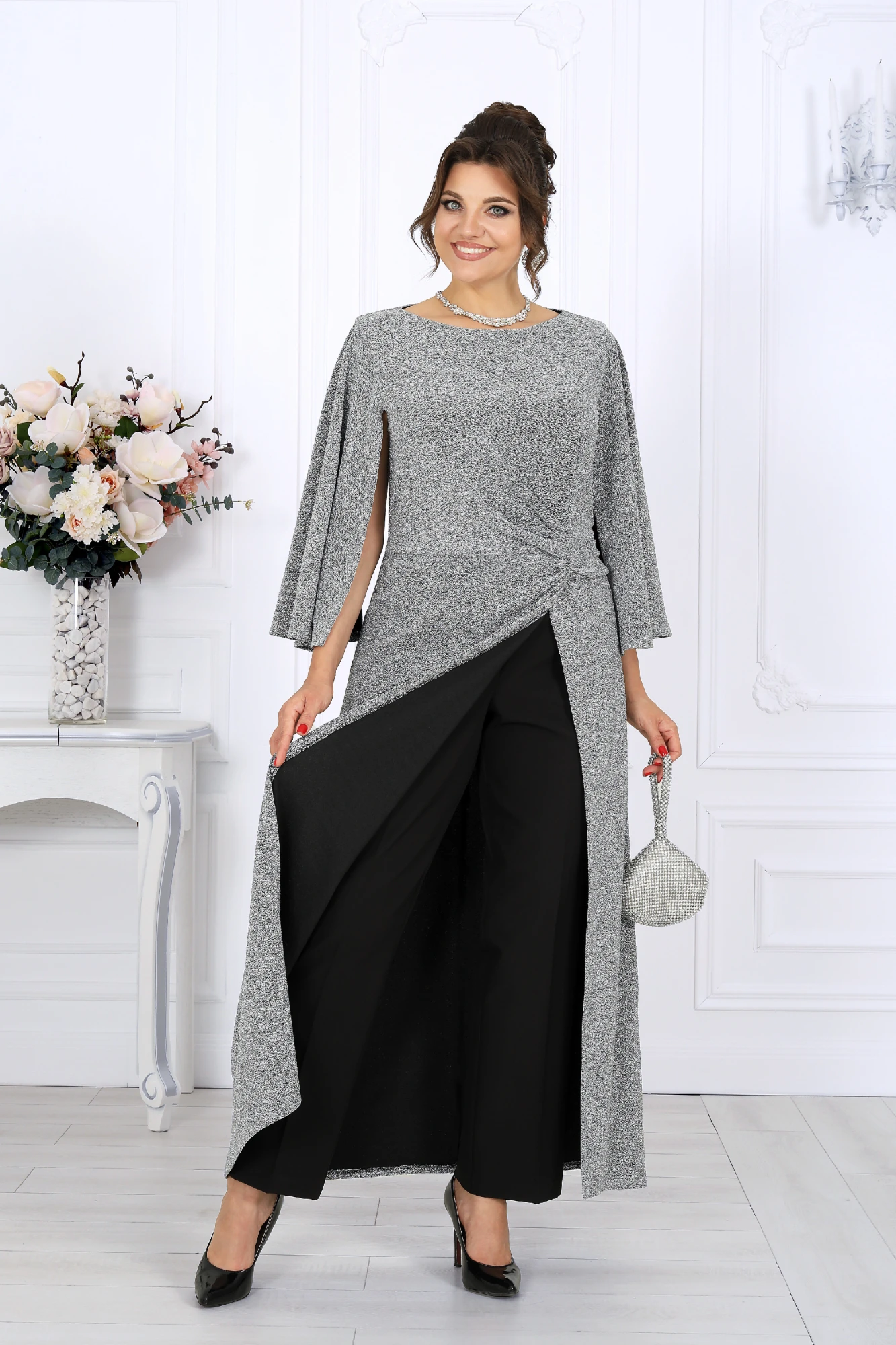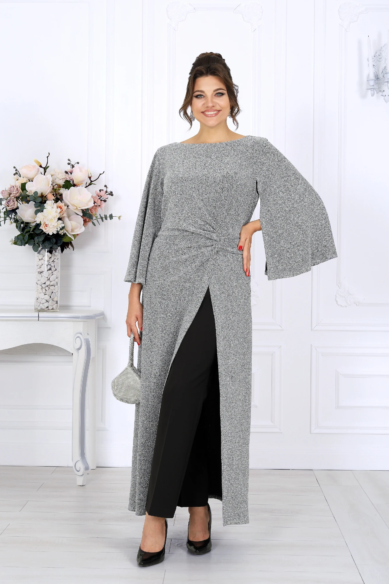 Брючный костюм Нинель Шик 6084 серебро двойка